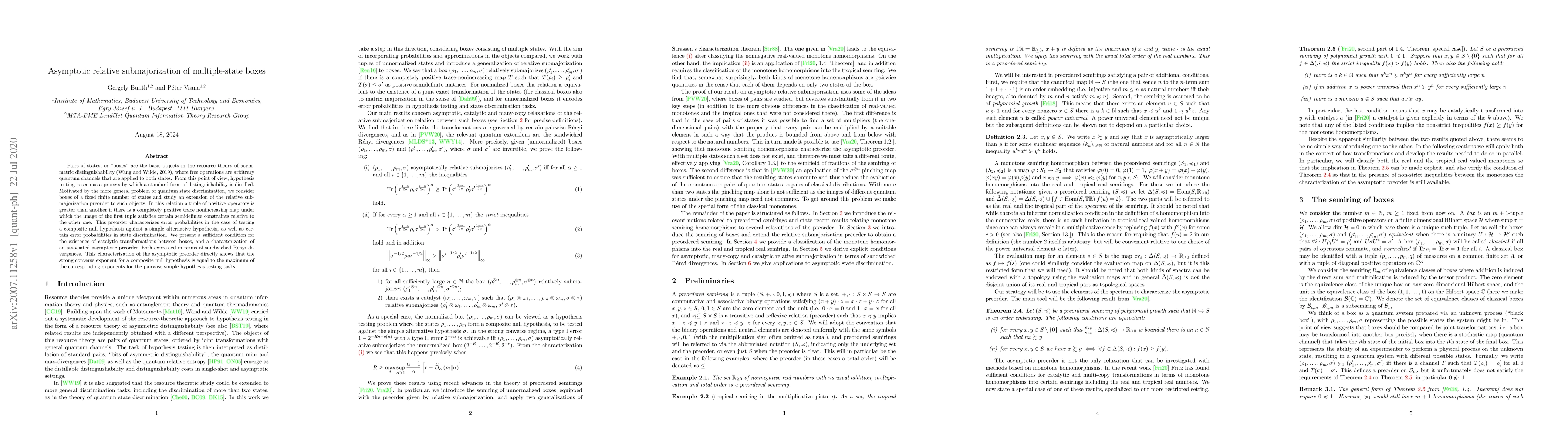 Pairs of states, or "boxes" are the basic objects in the resource theory of asymmetric distinguishability (Wang and Wilde, 2019), where free operations are arbitrary quantum channels that are applied to both states. From this point of view, hypothesis testing is seen as a process by which a standard form of distinguishability is distilled. Motivated by the more general problem of quantum state discrimination, we consider boxes of a fixed finite number of states and study an extension of the relative submajorization preorder to such objects. In this relation a tuple of positive operators is greater than another if there is a completely positive trace nonincreasing map under which the image of the first tuple satisfies certain semidefinite constraints relative to the other one. This preorder characterizes error probabilities in the case of testing a composite null hypothesis against a simple alternative hypothesis, as well as certain error probabilities in state discrimination. We present a sufficient condition for the existence of catalytic transformations between boxes, and a characterization of an associated asymptotic preorder, both expressed in terms of sandwiched R\'enyi divergences. This characterization of the asymptotic preorder directly shows that the strong converse exponent for a composite null hypothesis is equal to the maximum of the corresponding exponents for the pairwise simple hypothesis testing tasks.