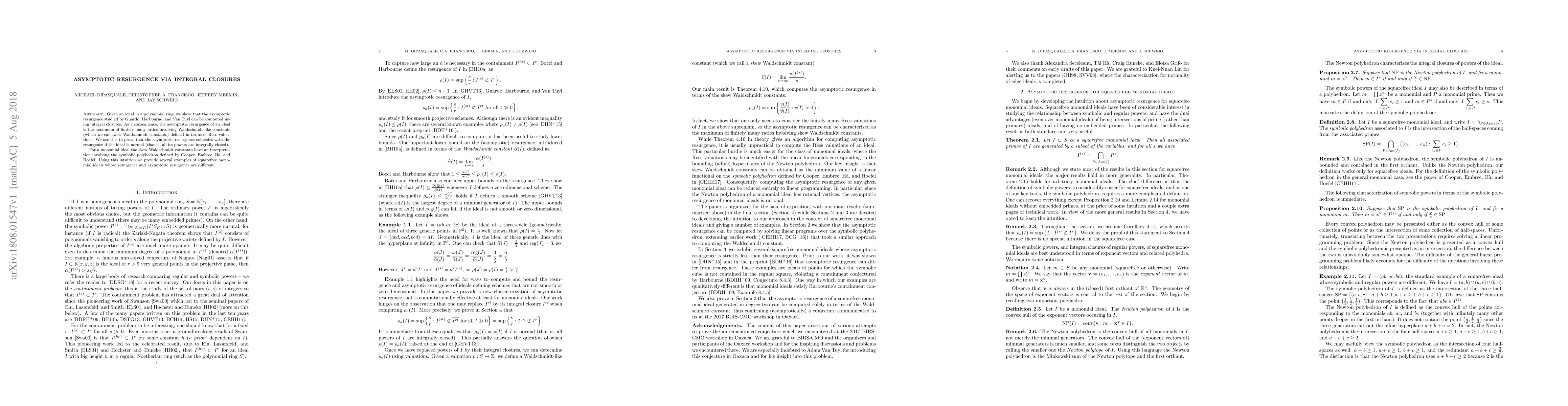 This paper demonstrates that asymptotic resurgence of an ideal in a polynomial ring can be determined through integral closures, equating it to the maximum of ratios involving newly defined skew Waldschmidt constants. It proves that for normal ideals, asymptotic resurgence matches the usual resurgence, and provides examples of squarefree monomial ideals where resurgence and asymptotic resurgence differ.