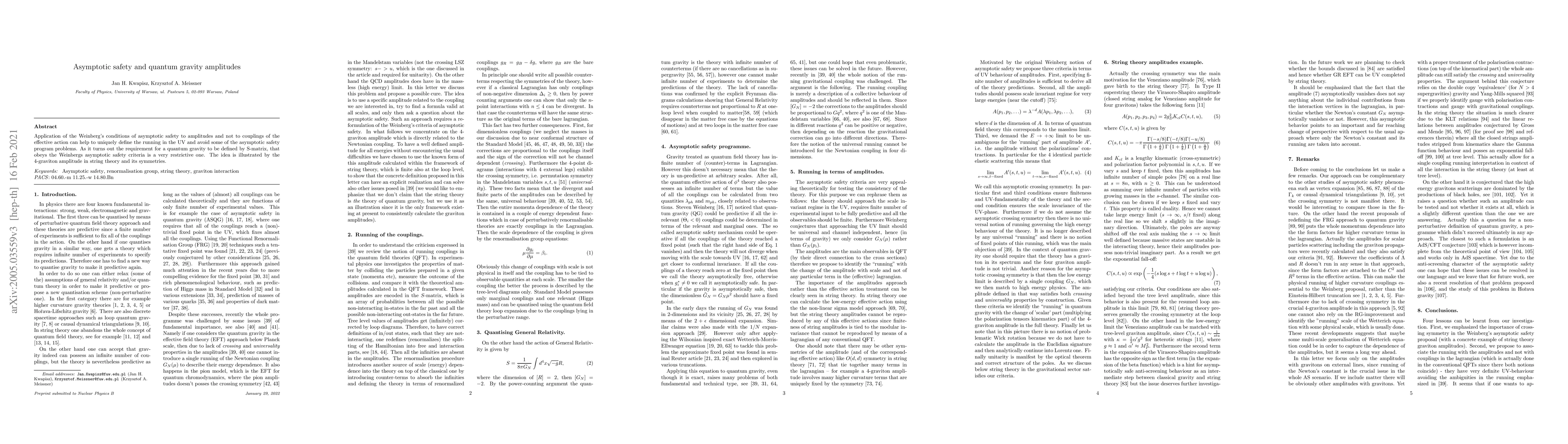 Application of the Weinberg's conditions of asymptotic safety to amplitudes and not to couplings of the effective action can help to uniquely define the running in the UV and avoid some of the asymptotic safety program problems. The idea is illustrated by the 4-graviton amplitude in string theory and its symmetries.