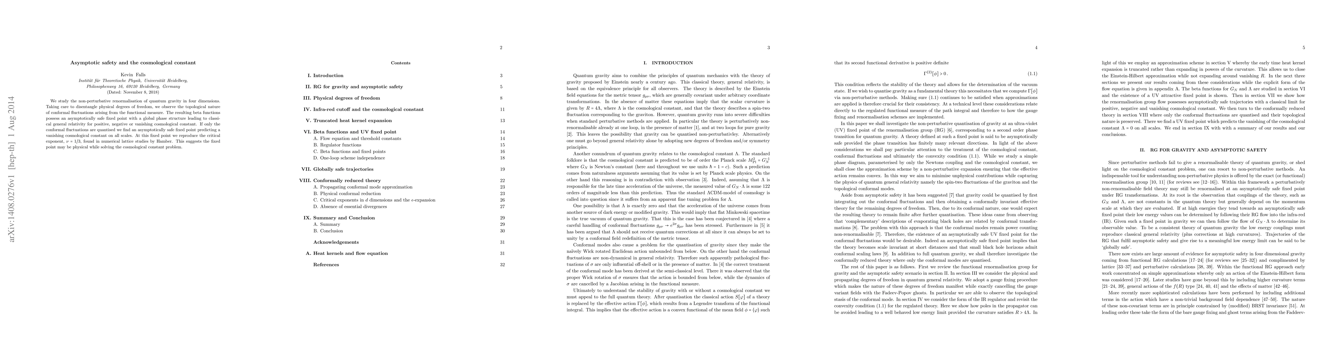 We study the non-perturbative renormalisation of quantum gravity in four dimensions. Taking care to disentangle physical degrees of freedom, we observe the topological nature of conformal fluctuations arising from the functional measure. The resulting beta functions possess an asymptotically safe fixed point with a global phase structure leading to classical general relativity for positive, negative or vanishing cosmological constant. If only the conformal fluctuations are quantised we find an asymptotically safe fixed point predicting a vanishing cosmological constant on all scales. At this fixed point we reproduce the critical exponent, $\nu = 1/3$, found in numerical lattice studies by Hamber. This suggests the fixed point may be physical while solving the cosmological constant problem.