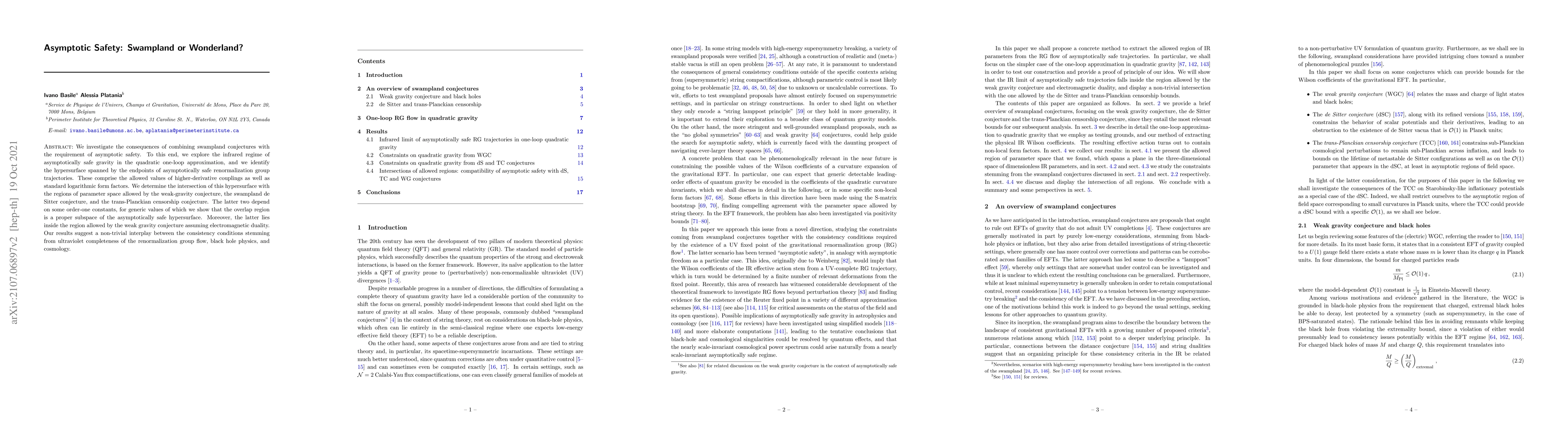 This paper explores the intersection of asymptotic safety in gravity with swampland conjectures, revealing that the allowed parameter space for higher-derivative couplings and logarithmic form factors lies within regions dictated by the weak-gravity, swampland de Sitter, and trans-Planckian censorship conjectures, suggesting a complex interplay between these conditions.