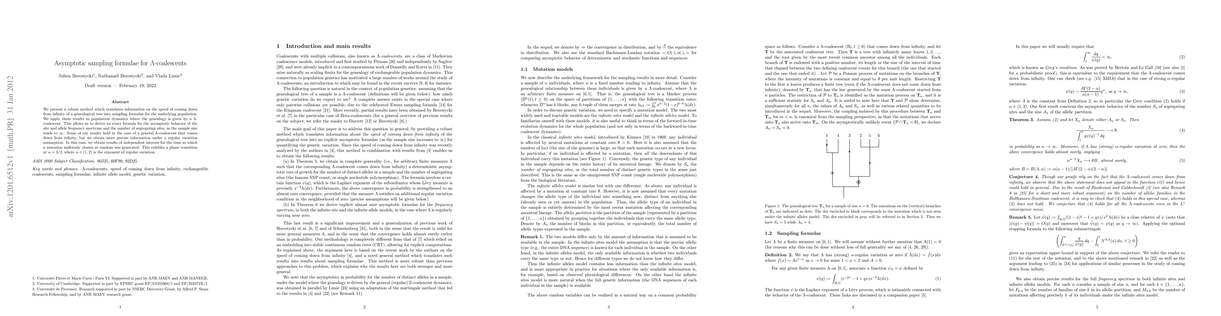We present a robust method which translates information on the speed of coming down from infinity of a genealogical tree into sampling formulae for the underlying population. We apply these results to population dynamics where the genealogy is given by a Lambda-coalescent. This allows us to derive an exact formula for the asymptotic behavior of the site and allele frequency spectrum and the number of segregating sites, as the sample size tends to infinity. Some of our results hold in the case of a general Lambda-coalescent that comes down from infinity, but we obtain more precise information under a regular variation assumption. In this case, we obtain results of independent interest for the time at which a mutation uniformly chosen at random was generated. This exhibits a phase transition at \alpha=3/2, where \alpha \in(1,2) is the exponent of regular variation.