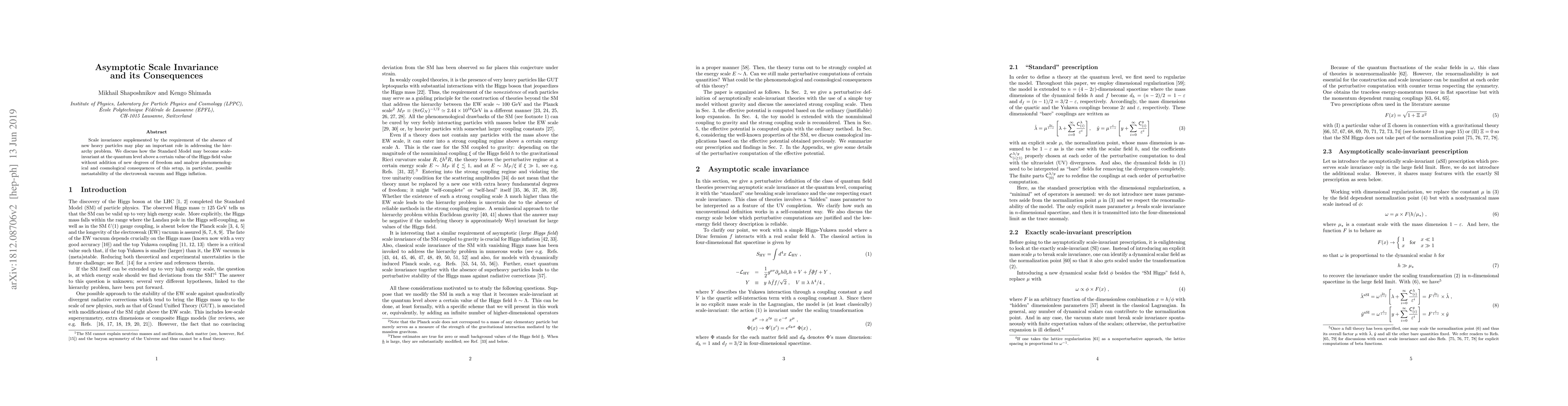 This paper explores how the Standard Model could become scale invariant without new particles, with potential consequences including metastability of the electroweak vacuum and Higgs inflation.