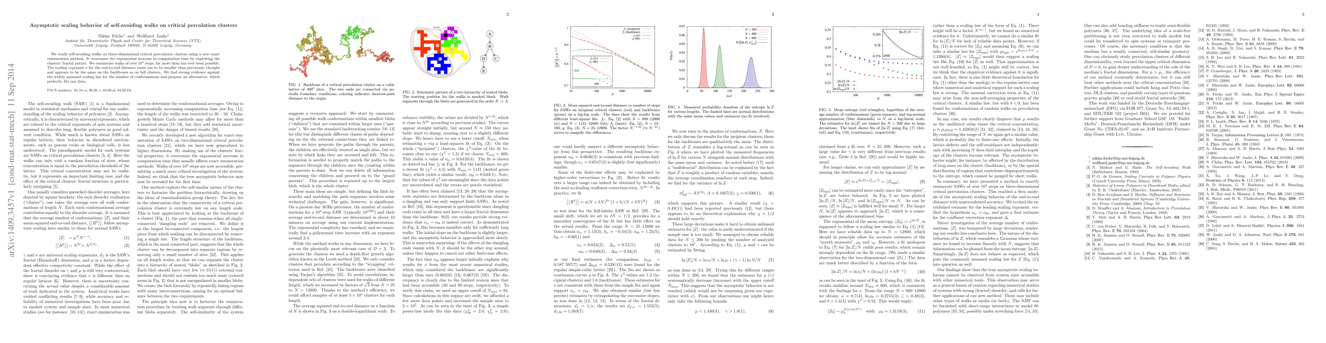 We study self-avoiding walks on three-dimensional critical percolation clusters using a new exact enumeration method. It overcomes the exponential increase in computation time by exploiting the clusters' fractal nature. We enumerate walks of over $10^4$ steps, far more than has ever been possible. The scaling exponent $\nu$ for the end-to-end distance turns out to be smaller than previously thought and appears to be the same on the backbones as on full clusters. We find strong evidence against the widely assumed scaling law for the number of conformations and propose an alternative, which perfectly fits our data.