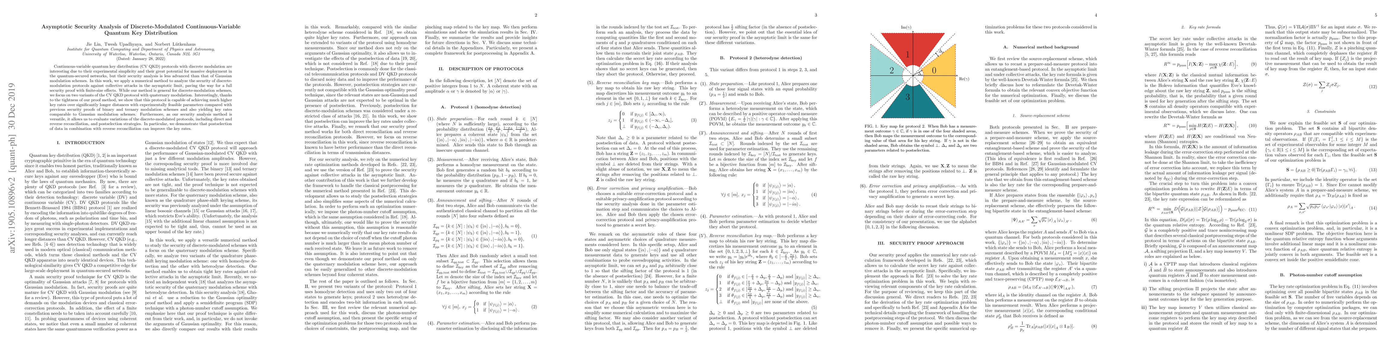 Continuous-variable quantum key distribution (CV QKD) protocols with discrete modulation are interesting due to their experimental simplicity and their great potential for massive deployment in the quantum-secured networks, but their security analysis is less advanced than that of Gaussian modulation schemes. In this work, we apply a numerical method to analyze the security of discrete-modulation protocols against collective attacks in the asymptotic limit, paving the way for a full security proof with finite-size effects. While our method is general for discrete-modulation schemes, we focus on two variants of the CV QKD protocol with quaternary modulation. Interestingly, thanks to the tightness of our proof method, we show that this protocol is capable of achieving much higher key rates over significantly longer distances with experimentally feasible parameters compared with previous security proofs of binary and ternary modulation schemes and also yielding key rates comparable to Gaussian modulation schemes. Furthermore, as our security analysis method is versatile, it allows us to evaluate variations of the discrete-modulated protocols, including direct and reverse reconciliation, and postselection strategies. In particular, we demonstrate that postselection of data in combination with reverse reconciliation can improve the key rates.