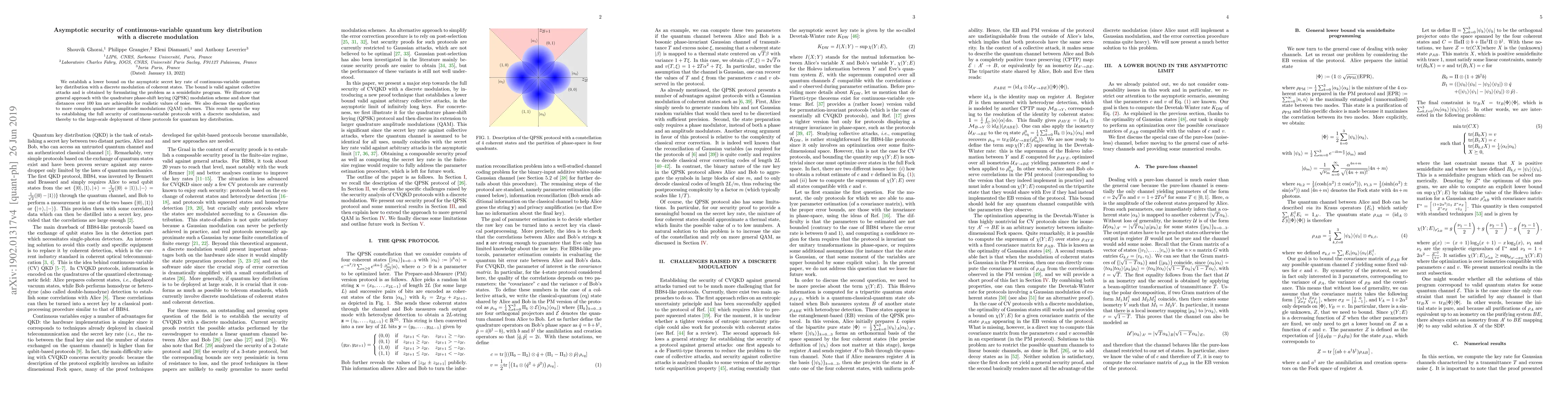 This paper establishes a lower bound for the asymptotic secret key rate in continuous-variable quantum key distribution using discrete modulation, demonstrating feasibility over 100 km for realistic noise conditions. It formulates the problem as a semidefinite program and applies the method to quadrature phase-shift keying, paving the way for secure large-scale quantum key distribution.