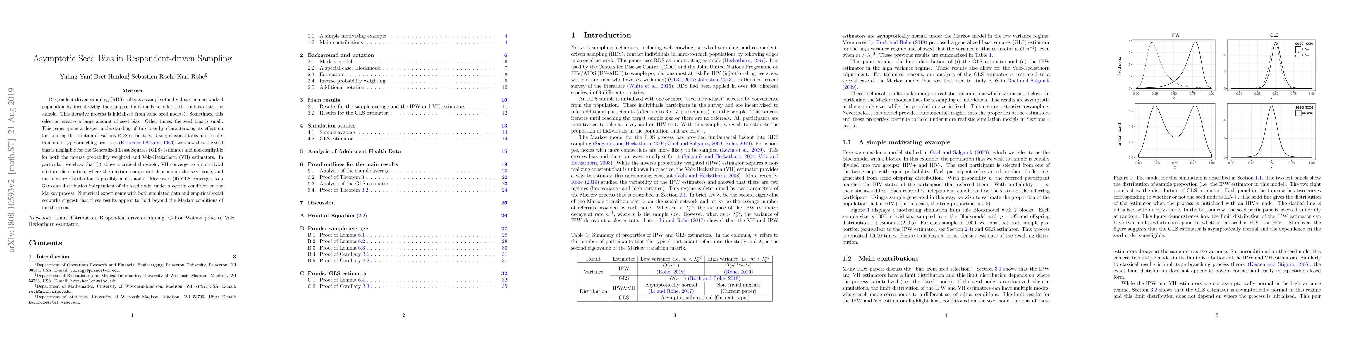 This paper investigates the asymptotic seed bias in respondent-driven sampling (RDS) and demonstrates that the Generalized Least Squares (GLS) estimator is unaffected by seed bias, while the inverse probability weighted and Volz-Heckathorn (VH) estimators show significant bias. It reveals that VH estimators converge to a non-trivial mixture distribution dependent on the seed node, potentially multi-modal.