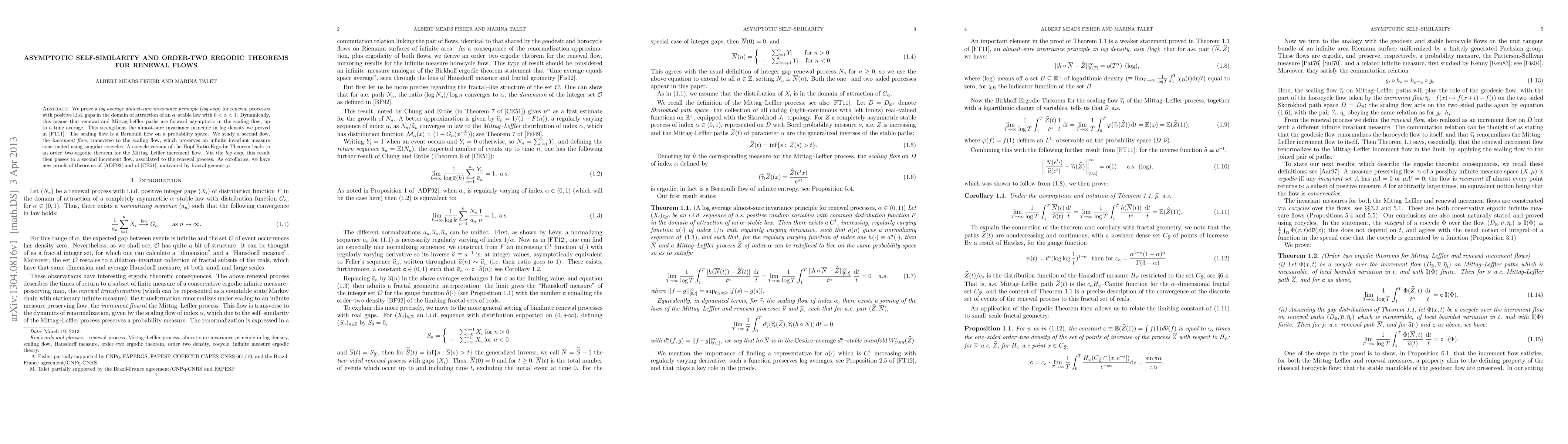 We prove a log average almost-sure invariance principle (log asip) for renewal processes with positive i.i.d. gaps in the domain of attraction of an $\alpha$-stable law with $0<\alpha<1$. Dynamically, this means that renewal and Mittag-Leffler paths are forward asymptotic in the scaling flow, up to a time average. This strengthens the almost-sure invariance principle in log density we proved in {FisherTalet2011}. The scaling flow is a Bernoulli flow on a probability space. We study a second flow, the increment flow, transverse to the scaling flow, which preserves an infinite invariant measure constructed using singular cocycles. A cocycle version of the Hopf Ratio Ergodic Theorem leads to an order--two ergodic theorem for the Mittag--Leffler increment flow. Via the log asip, this result then passes to a second increment flow, associated to the renewal process. As corollaries, we have new proofs of theorems of {AaronsonDenkerFisher1992} and of {ChungErdos1951}, motivated by fractal geometry.