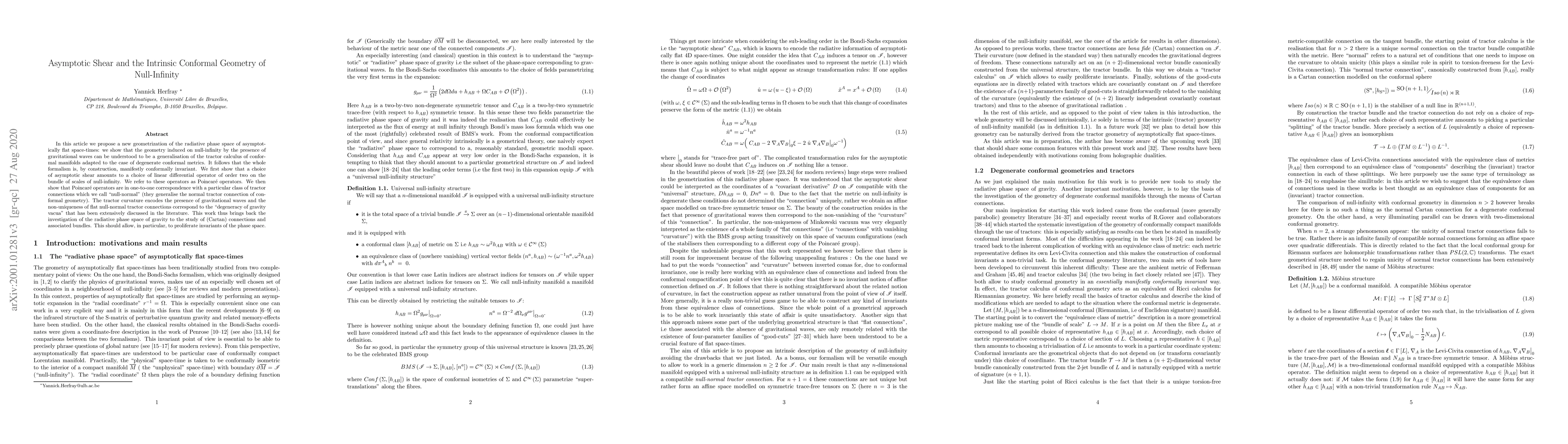 In this article we propose a new geometrization of the radiative phase space of asymptotically flat space-times: we show that the geometry induced on null-infinity by the presence of gravitational waves can be understood to be a generalisation of the tractor calculus of conformal manifolds adapted to the case of degenerate conformal metrics. It follows that the whole formalism is, by construction, manifestly conformally invariant. We first show that a choice of asymptotic shear amounts to a choice of linear differential operator of order two on the bundle of scales of null-infinity. We refer to these operators as Poincar\'e operators. We then show that Poincar\'e operators are in one-to-one correspondence with a particular class of tractor connections which we call "null-normal" (they generalise the normal tractor connection of conformal geometry). The tractor curvature encodes the presence of gravitational waves and the non-uniqueness of flat null-normal tractor connections correspond to the "degeneracy of gravity vacua" that has been extensively discussed in the literature. This work thus brings back the investigation of the radiative phase space of gravity to the study of (Cartan) connections and associated bundles. This should allow, in particular, to proliferate invariants of the phase space.