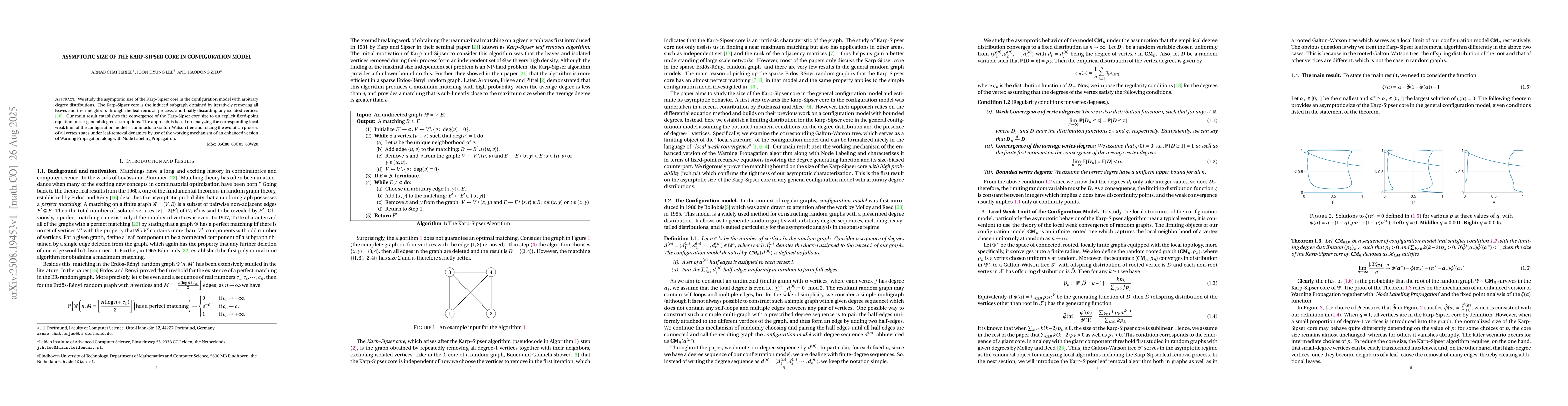 We study the asymptotic size of the Karp-Sipser core in the configuration model with arbitrary degree distributions. The Karp-Sipser core is the induced subgraph obtained by iteratively removing all leaves and their neighbors through the leaf-removal process, and finally discarding any isolated vertices \cite{BCC}. Our main result establishes the convergence of the Karp-Sipser core size to an explicit fixed-point equation under general degree assumptions.The approach is based on analyzing the corresponding local weak limit of the configuration model - a unimodular Galton-Watson tree and tracing the evolution process of all vertex states under leaf-removal dynamics by use of the working mechanism of an enhanced version of Warning Propagation along with Node Labeling Propagation.