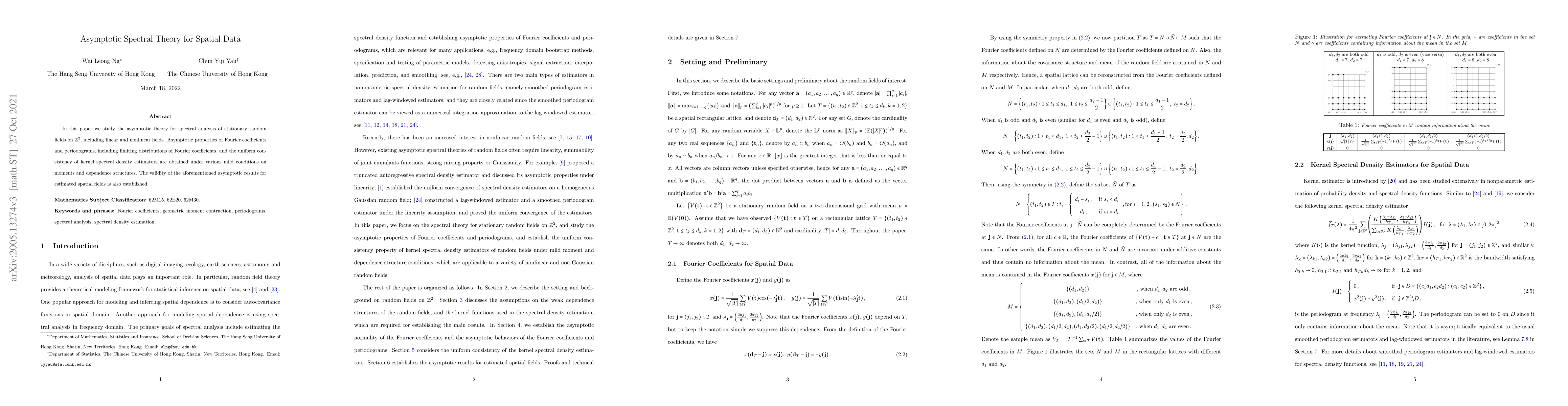 This paper develops asymptotic spectral theory for analyzing stationary random fields, providing consistency results for Fourier coefficients, periodograms, and kernel spectral density estimators under mild conditions on moments and dependence structures.