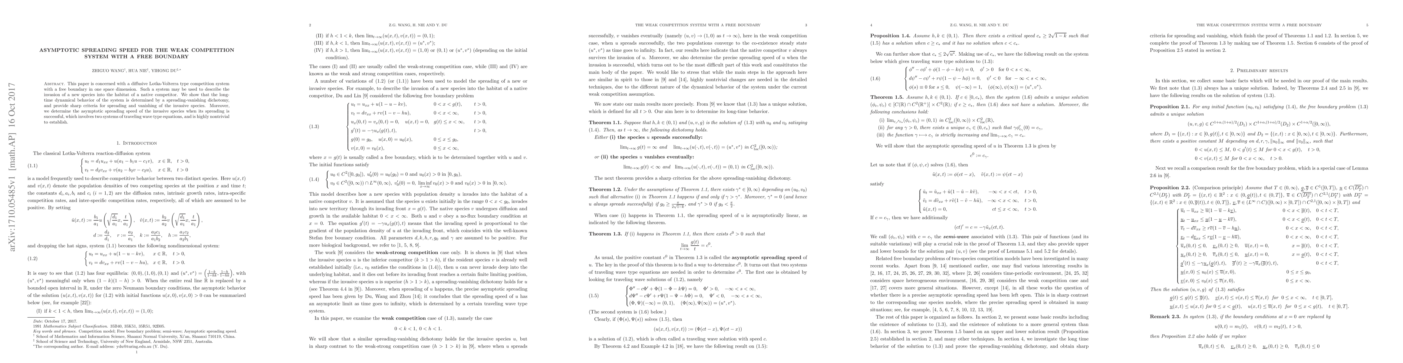 This paper investigates the asymptotic spreading speed in a diffusive competition system with a free boundary, showing a spreading-vanishing dichotomy and determining the conditions for successful invasion of a new species, along with the precise rate of its spread. The study resolves complex traveling wave equations to establish the spreading speed.