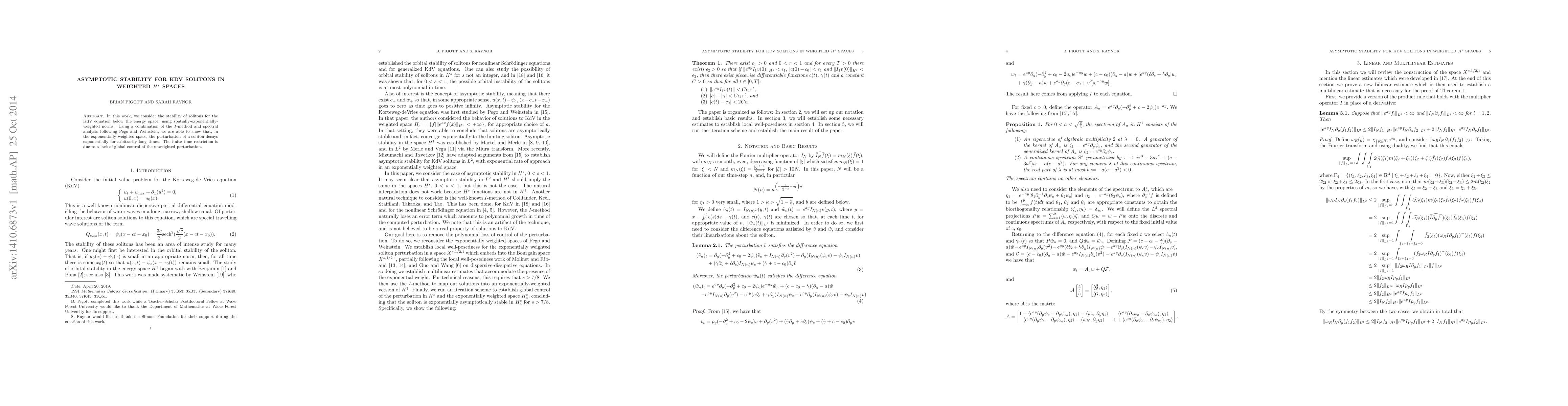 This work builds on previous research and provides new insights into the stability of solitary waves, particularly in the context of energy norms.