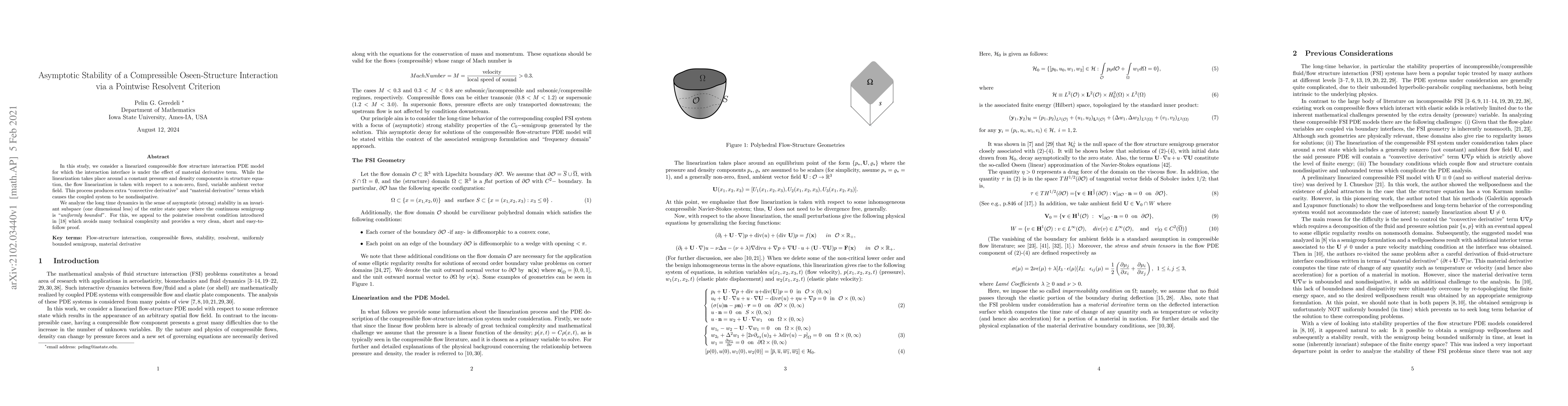 This paper investigates the asymptotic stability of a linearized compressible flow-structure interaction model, focusing on the presence of convective and material derivative terms. It employs a pointwise resolvent criterion to demonstrate strong asymptotic stability in a reduced invariant subspace, simplifying the technical complexities involved.