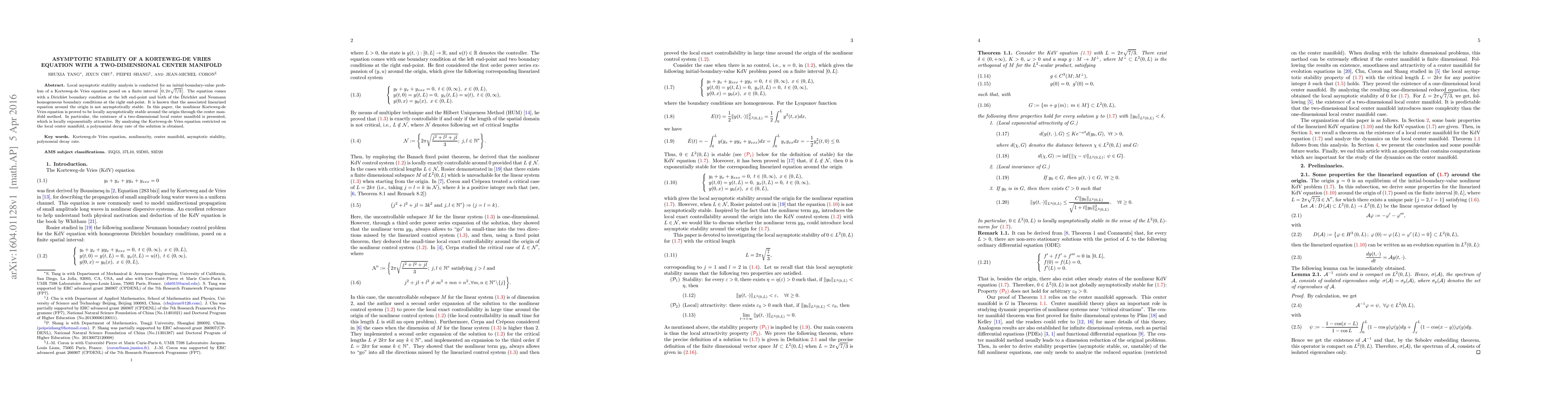 This paper investigates the local asymptotic stability of a Korteweg-de Vries equation on a finite interval using the center manifold method. It proves that the nonlinear equation is locally asymptotically stable around the origin, despite the instability of its linearized version, by demonstrating the existence of a two-dimensional center manifold that is locally exponentially attractive.