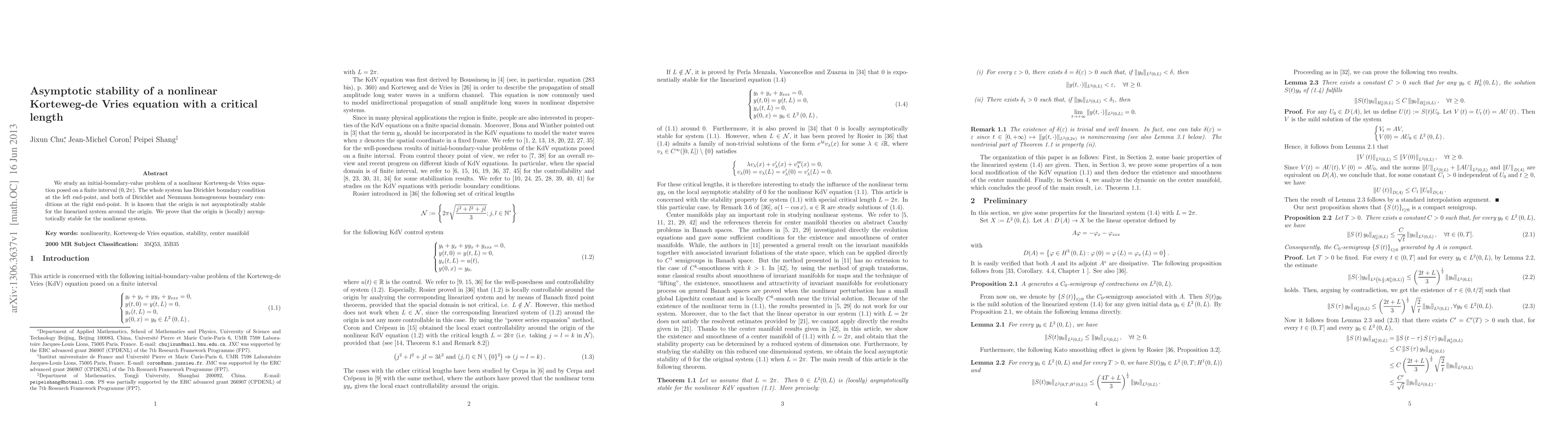 A nonlinear Korteweg-de Vries equation is studied for its asymptotic stability properties with specific boundary conditions. The origin is found to be locally asymptotically stable under these conditions.