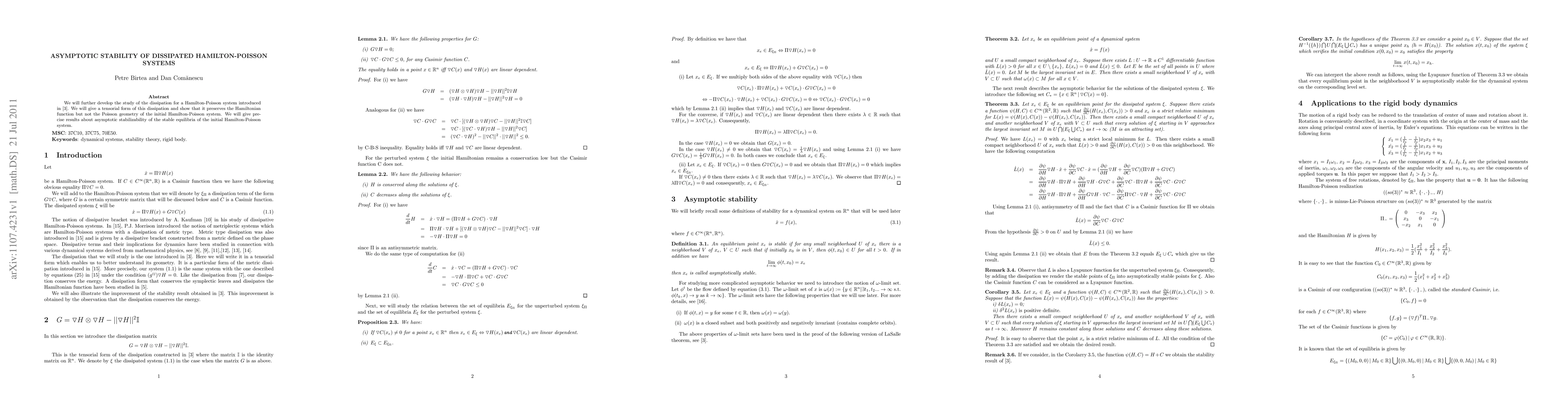 This research develops a tensorial form of dissipation for Hamilton-Poisson systems, demonstrating it maintains the Hamiltonian function while altering the Poisson geometry. It provides detailed results on the asymptotic stabilizability of the system's stable equilibria.