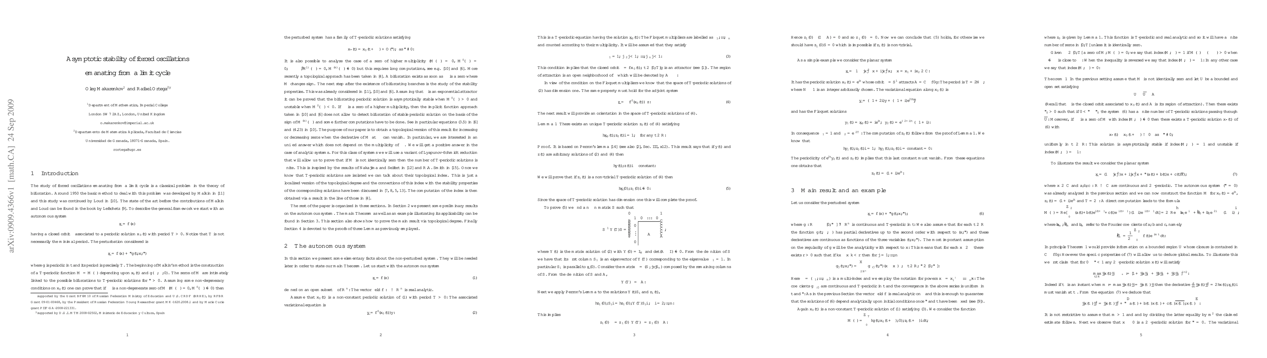 This paper demonstrates that for analytic systems, asymptotic stability of periodic solutions emerging from a limit cycle is determined by the topological index ind(t,F), rather than the derivative (d/dt)F(t), even when the latter is zero. This provides a topological approach to stability analysis.