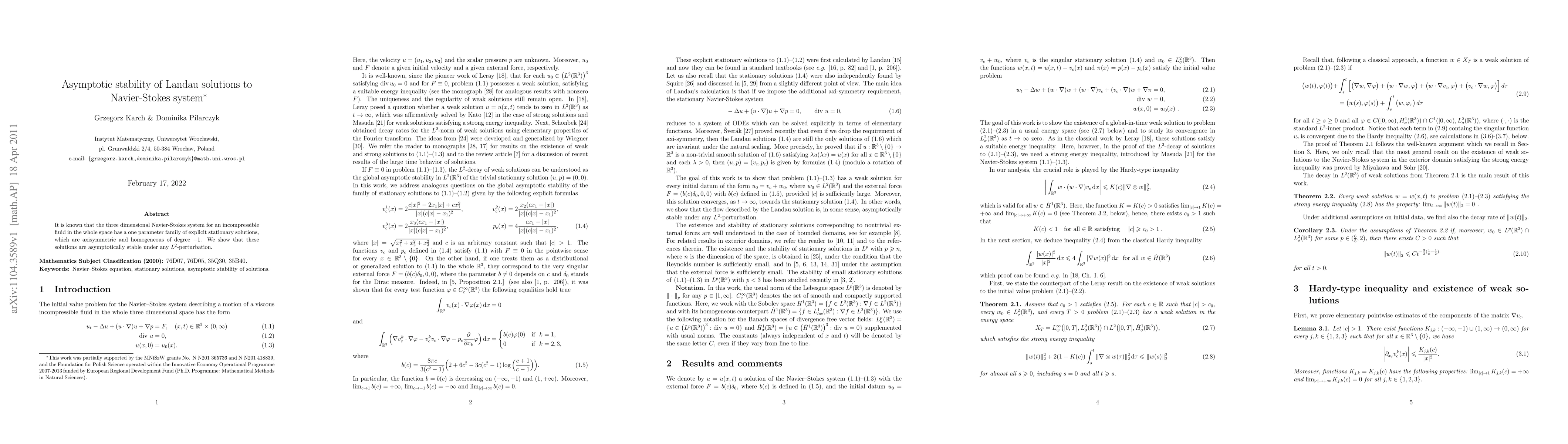 Summary: The paper demonstrates that the axisymmetric, homogeneous, and stationary solutions of the three-dimensional Navier-Stokes system are asymptotically stable under any $L^2$-perturbation, providing insights into the stability of Landau solutions.