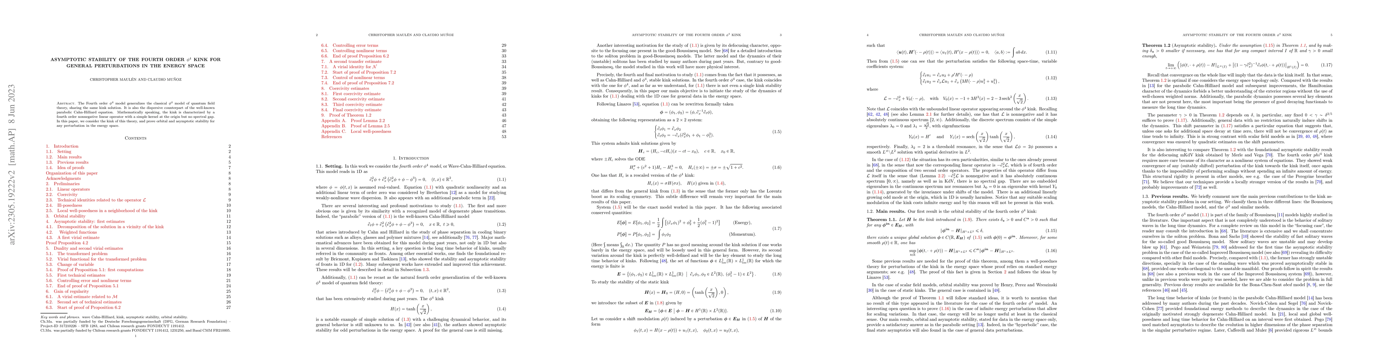 The Fourth order $\phi^4$ model generalizes the classical $\phi^4$ model of quantum field theory, sharing the same kink solution. It is also the dispersive counterpart of the well-known parabolic Cahn-Hilliard equation. Mathematically speaking, the kink is characterized by a fourth-order nonnegative linear operator with a simple kernel at the origin but no spectral gap. In this paper, we consider the kink of this theory, and prove orbital and asymptotic stability for any perturbation in the energy space.