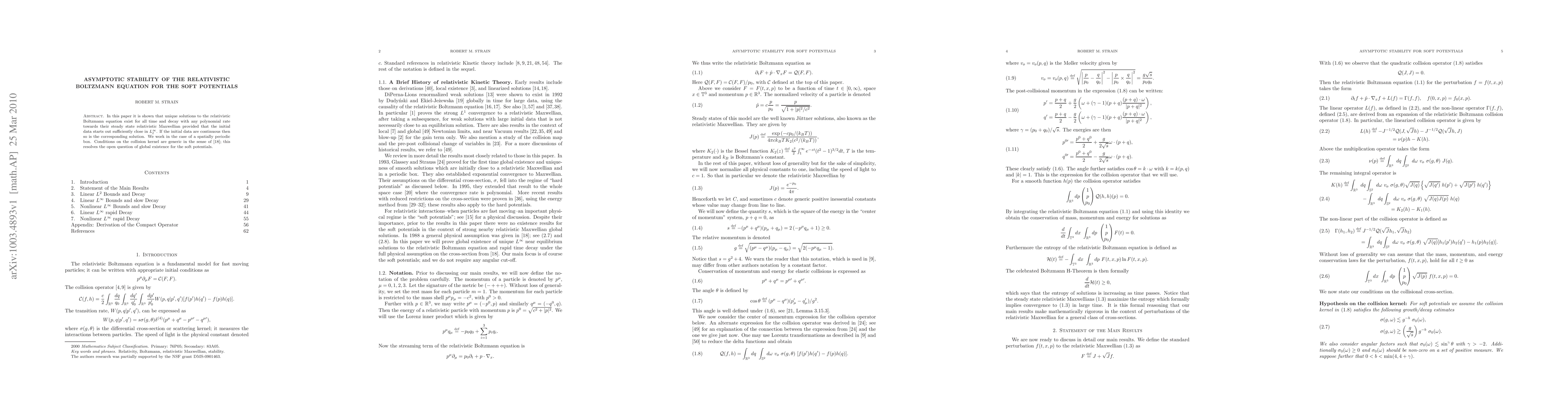 The paper shows that solutions to the relativistic Boltzmann equation exist for all time and decay towards a steady state, provided initial data is sufficiently close in $L^ ext{∞}_ ext{l}$, resolving an open question on global existence for soft potentials.