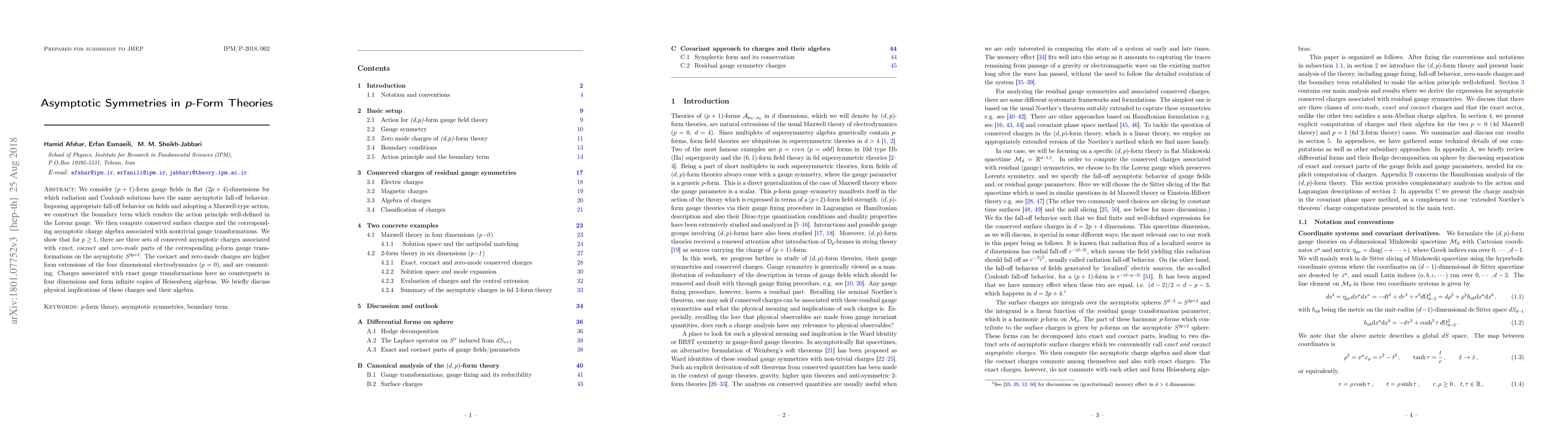 This paper investigates $(p+1)$-form gauge fields in $(2p+4)$-dimensional flat space, revealing three sets of conserved asymptotic charges associated with different gauge transformation types. The study finds that coexact and zero-mode charges extend electrodynamics, while exact gauge transformation charges correspond to infinite copies of Heisenberg algebras, with significant physical implications.