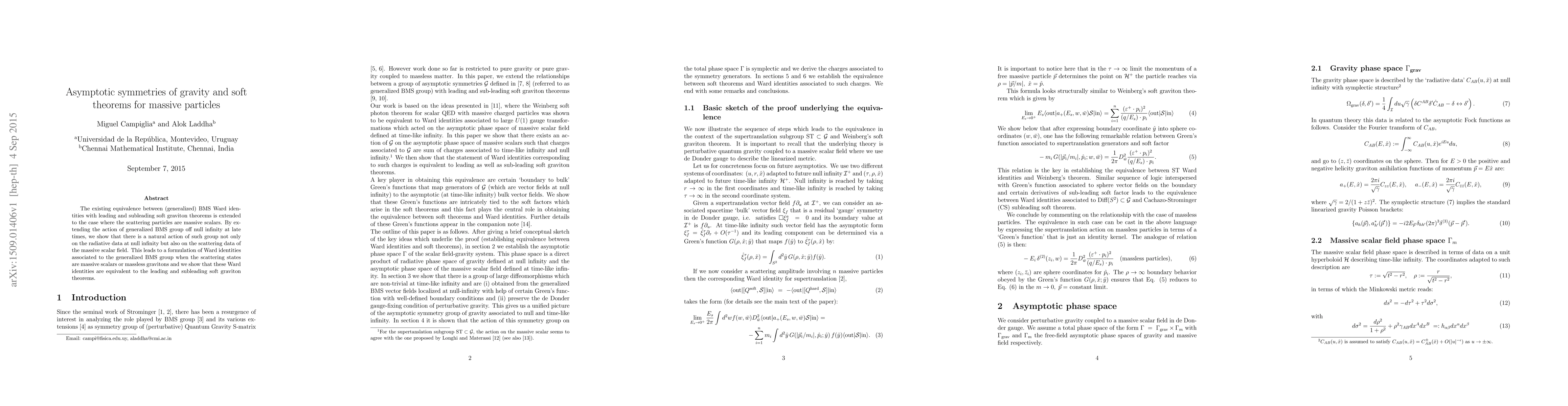 This paper extends the equivalence between BMS Ward identities and soft graviton theorems to massive scalar particles, demonstrating that the generalized BMS group acts on both radiative and scattering data, leading to Ward identities equivalent to the leading and subleading soft graviton theorems.