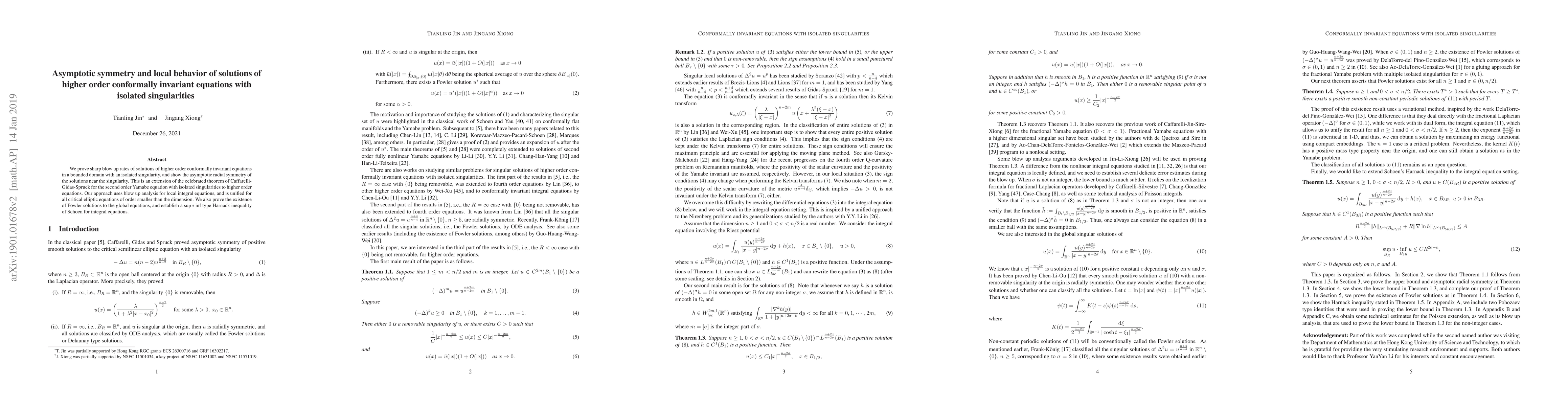 We prove sharp blow up rates of solutions of higher order conformally invariant equations in a bounded domain with an isolated singularity, and show the asymptotic radial symmetry of the solutions near the singularity. This is an extension of the celebrated theorem of Caffarelli-Gidas-Spruck for the second order Yamabe equation with isolated singularities to higher order equations. Our approach uses blow up analysis for local integral equations, and is unified for all critical elliptic equations of order smaller than the dimension. We also prove the existence of Fowler solutions to the global equations, and establish a sup*inf type Harnack inequality of Schoen for integral equations.