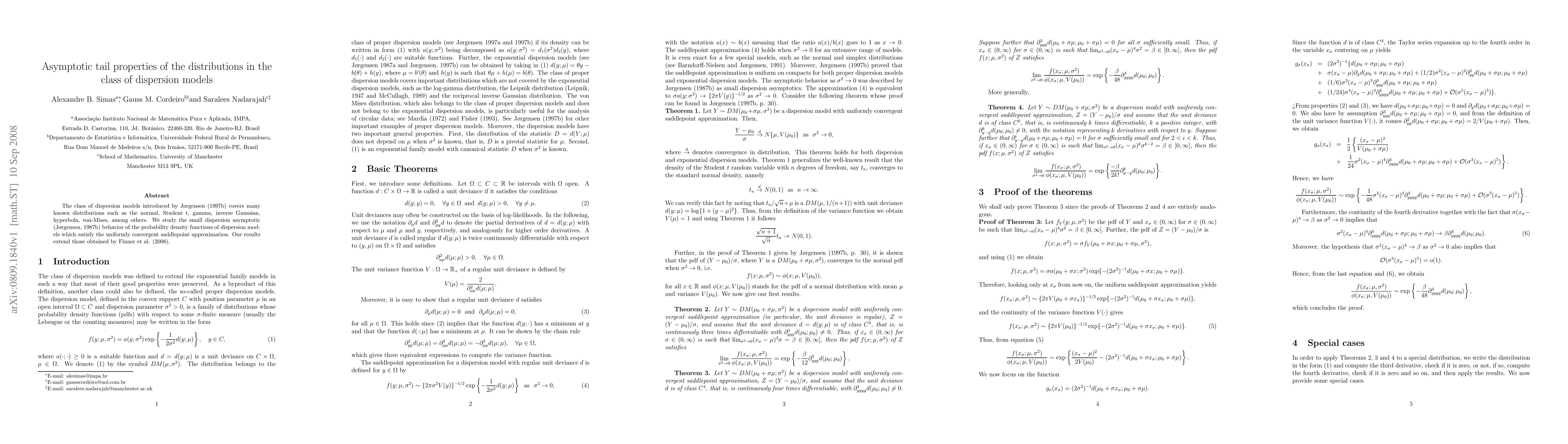 The class of dispersion models introduced by J{\o}rgensen (1997b) covers many known distributions such as the normal, Student t, gamma, inverse Gaussian, hyperbola, von-Mises, among others. We study the small dispersion asymptotic (J{\o}rgensen, 1987b) behavior of the probability density functions of dispersion models which satisfy the uniformly convergent saddlepoint approximation. Our results extend those obtained by Finner et al. (2008).