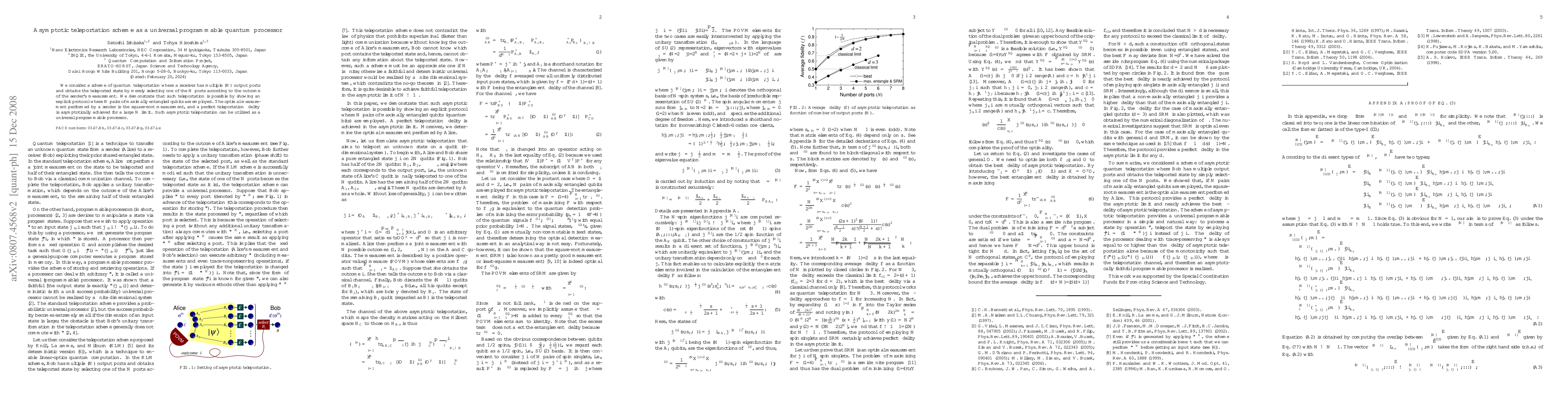 This paper proposes an asymptotic teleportation scheme using multiple output ports, where the receiver selects one port based on the sender's measurement. It demonstrates a protocol employing N pairs of entangled qubits, achieving perfect teleportation fidelity in the large N limit, and suggests its potential as a universal programmable quantum processor.