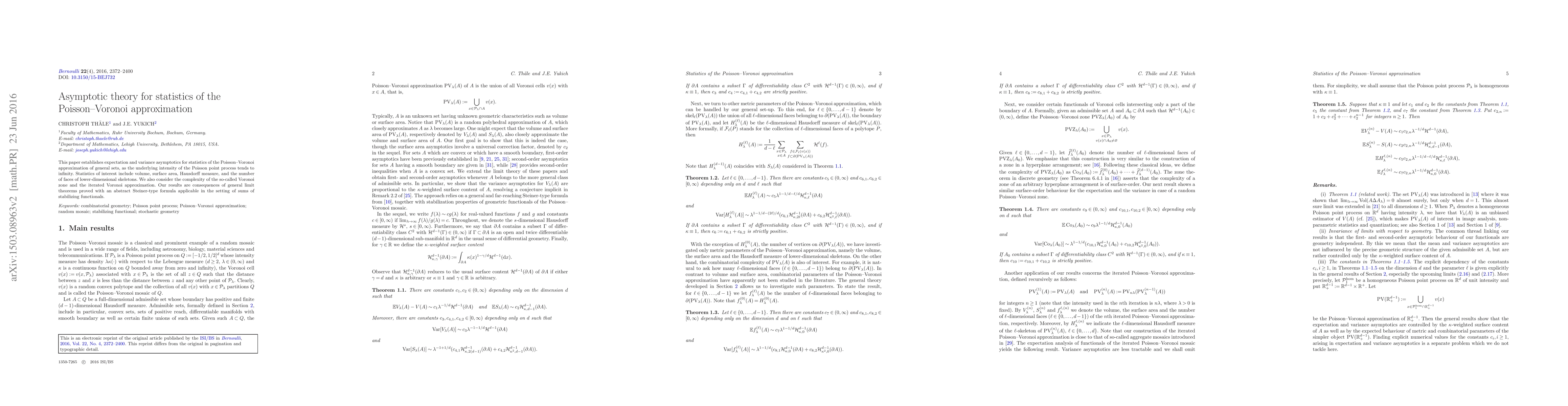 This paper develops asymptotic theories for statistics of the Poisson-Voronoi approximation, including volume, surface area, and complexity measures, as the intensity of the underlying Poisson point process approaches infinity, using a general limit theorem based on an abstract Steiner-type formula.