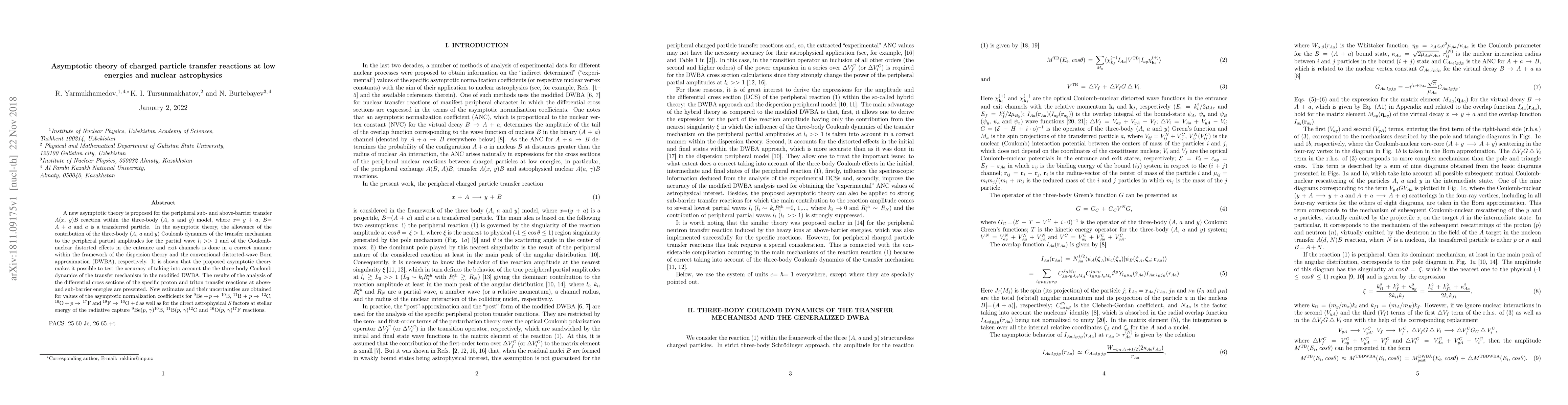 A novel asymptotic theory is proposed for low-energy charged particle transfer reactions, incorporating three-body Coulomb dynamics and distortion effects. The theory's accuracy in modified Distorted-Wave Born Approximation (DWBA) is validated through analysis of specific proton and triton transfer reactions. New estimates are provided for normalization coefficients and astrophysical S factors of reactions relevant to nuclear astrophysics, including ^9Be+p, ^{11}B+p, ^{16}O+p, and their corresponding radiative capture reactions.