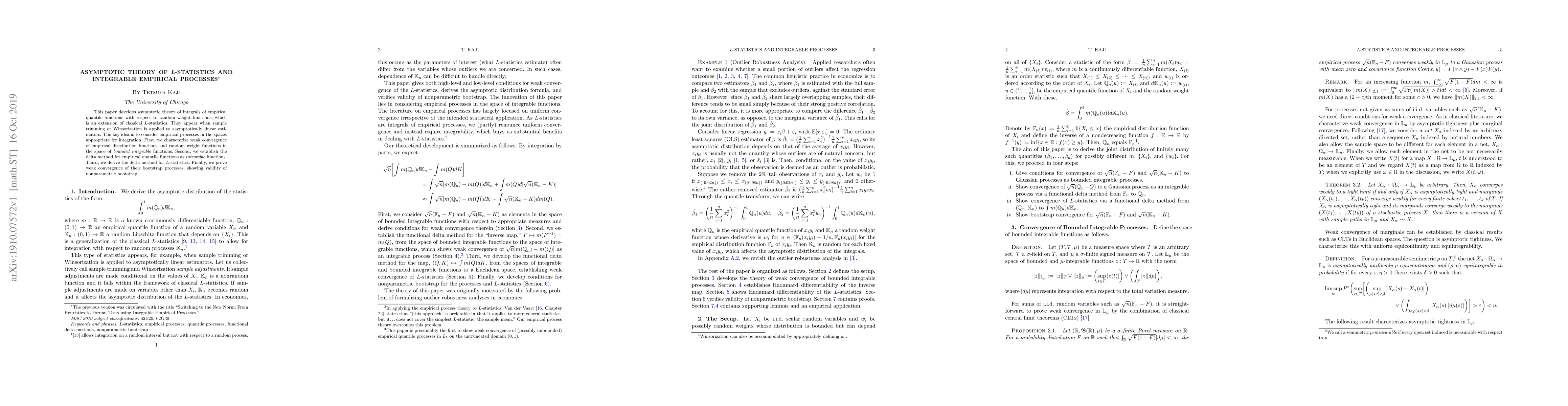 This paper extends the asymptotic theory of $L$-statistics to integrals of empirical quantile functions with respect to random weight functions, establishing weak convergence and delta methods for these processes and proving the validity of the nonparametric bootstrap.