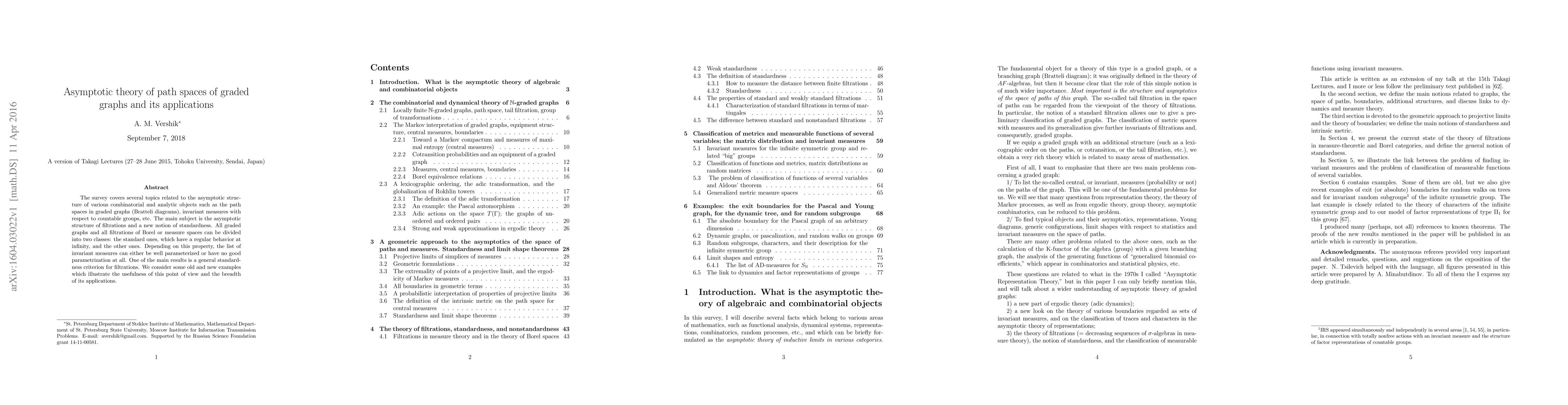This paper surveys the asymptotic structure of path spaces in graded graphs, introducing a new notion of standardness to classify filtrations. It establishes a criterion for standardness and demonstrates its applications through various examples, showing how standardness affects the parameterization of invariant measures.