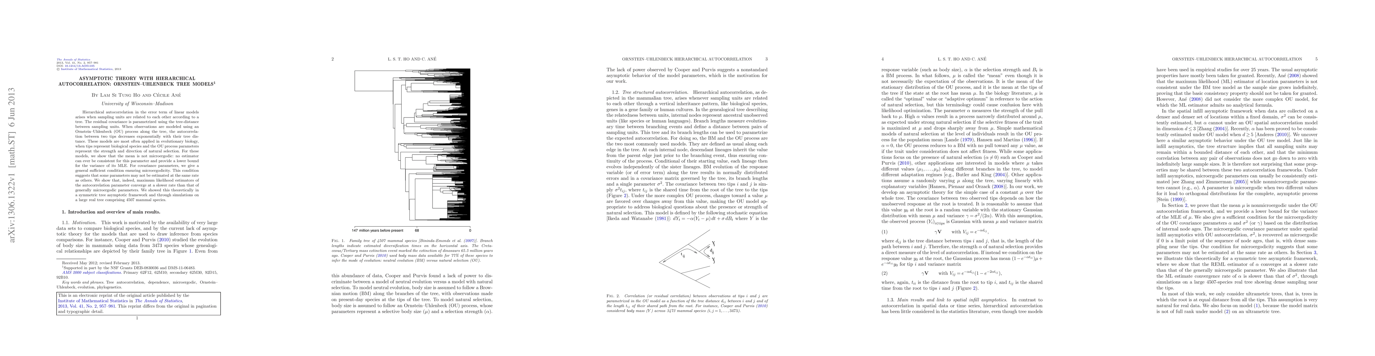 This paper explores hierarchical autocorrelation in linear models with tree-structured sampling units, applying Ornstein-Uhlenbeck (OU) processes. It demonstrates that the mean parameter in these models is not microergodic, while providing sufficient conditions for microergodicity in covariance parameters, showing that some parameters may converge at different rates.