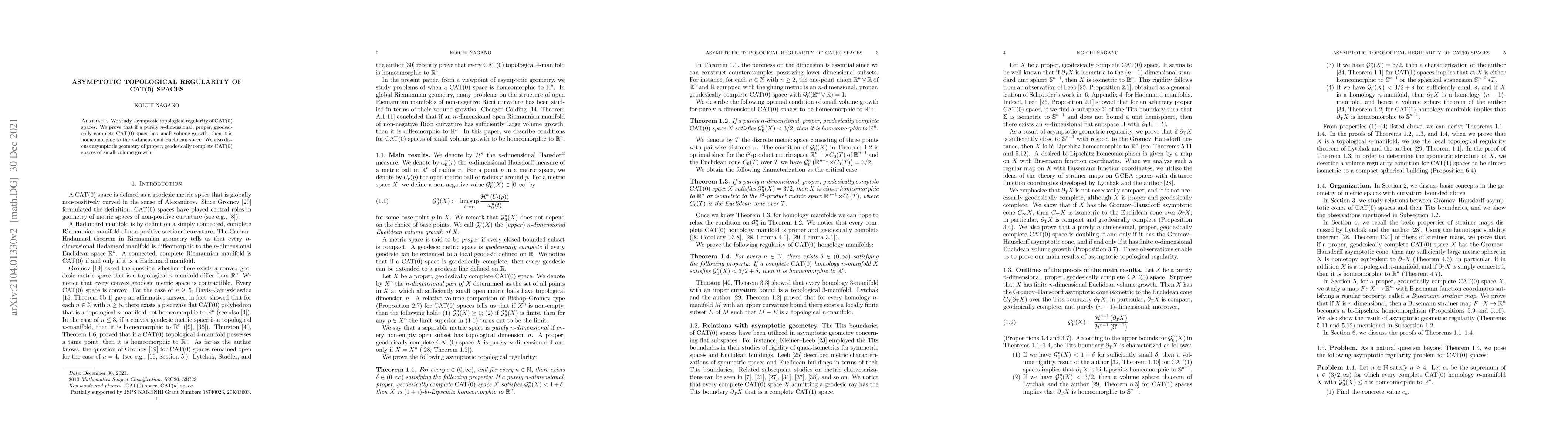 This paper proves that purely n-dimensional, proper, geodesically complete CAT(0) spaces with small volume growth are homeomorphic to n-dimensional Euclidean space. It also examines the asymptotic geometry of such spaces.