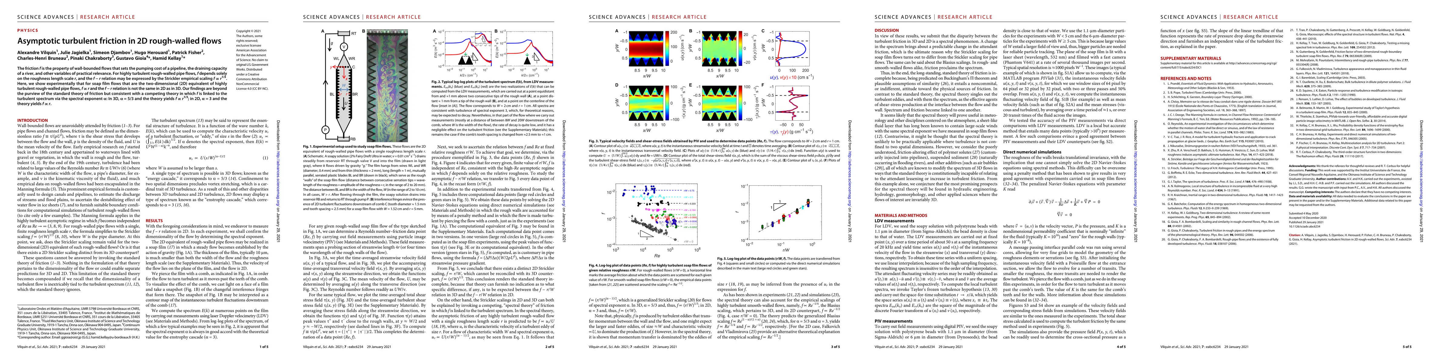 This study experimentally demonstrates that in two-dimensional turbulent rough-walled flows, friction f scales with the roughness length scale r as f ∝ r, differing from the 3D relation f ∝ r^(1/3). This finding supports a theory linking friction to the turbulent spectrum via the spectral exponent α, which is 3 in 2D instead of 5/3 in 3D.