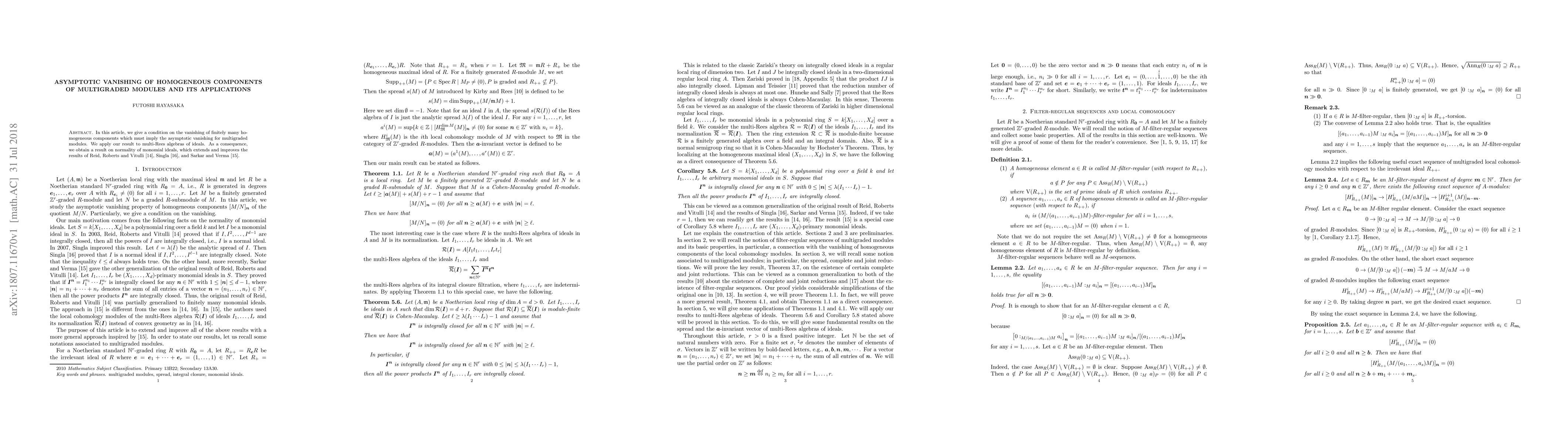 This paper establishes a condition for the asymptotic vanishing of homogeneous components in multigraded modules, applying it to multi-Rees algebras of ideals and deriving a strengthened result on the normality of monomial ideals.