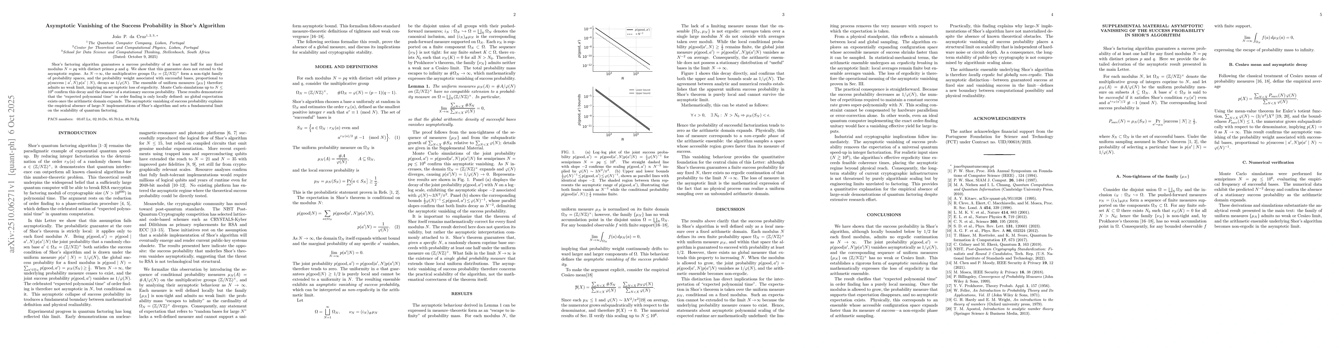 Introduces the concept of asymptotic vanishing of success probability in Shor's algorithm, distinguishing between local guarantees for fixed N and the absence of global asymptotic behavior, which was previously not formally established.