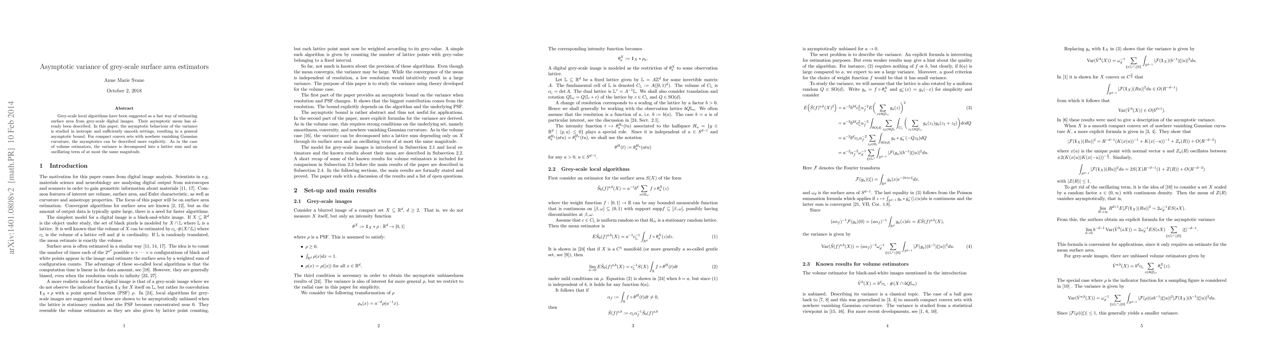 This paper investigates the asymptotic variance of grey-scale surface area estimators, providing a general bound in isotropic and smooth settings. For compact convex sets with non-zero Gaussian curvature, it explicitly describes the asymptotics, decomposing the variance into a lattice sum and an oscillating term.