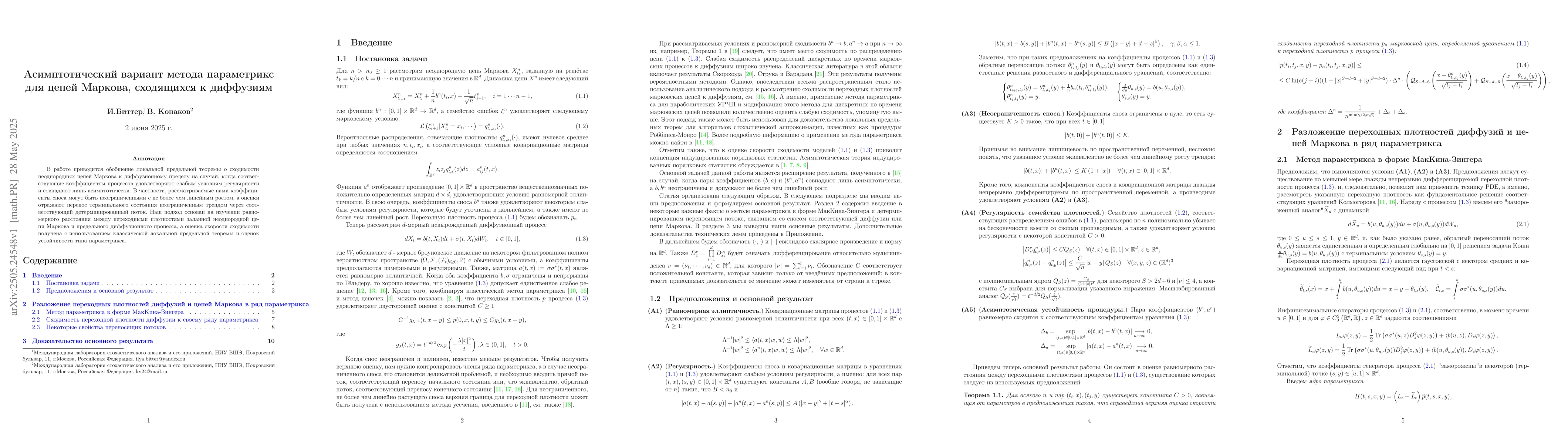 The paper presents a generalization of the local limit theorem on the convergence of inhomogeneous Markov chains to the diffusion limit for the case where the corresponding process coefficients satisfy weak regularity conditions and coincide only asymptotically. In particular, the drift coefficients considered by us can be unbounded with at most linear growth, and the estimates reflect the transfer of the terminal state by an unbounded trend through the corresponding deterministic flow. Our approach is based on the study of the uniform distance between the transition densities of a given inhomogeneous Markov chain and the limit diffusion process, and the convergence rate estimate is obtained using the classical local limit theorem and parametrix-type stability estimates.
