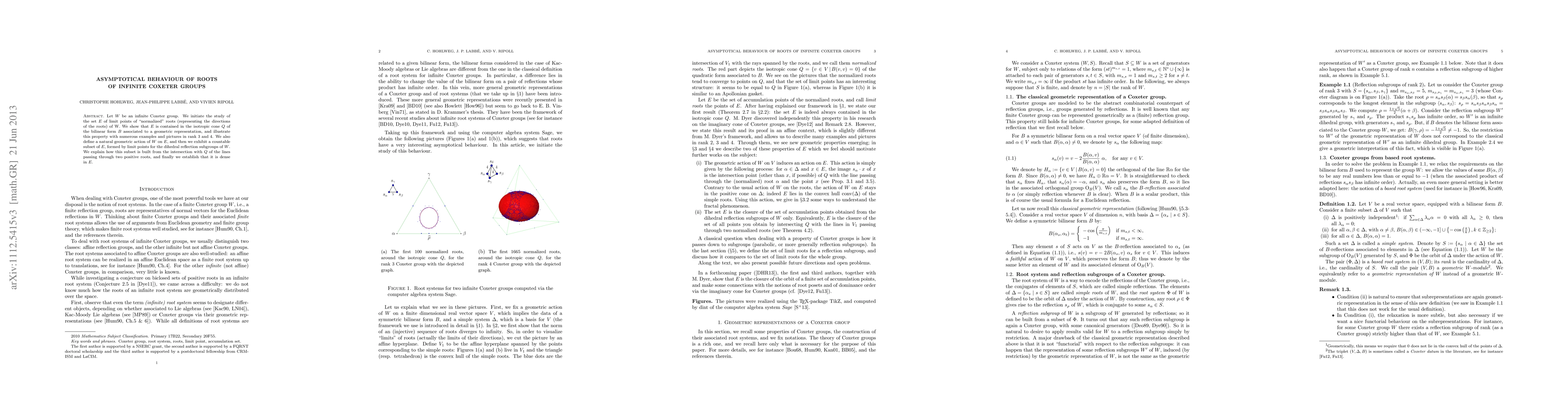 This paper studies the asymptotic behavior of normalized positive roots in infinite Coxeter groups, showing that their limit points lie within the isotropic cone of a related bilinear form. It defines a geometric action of the Coxeter group on these limit points and demonstrates that a countable dense subset arises from intersections of lines through pairs of positive roots.