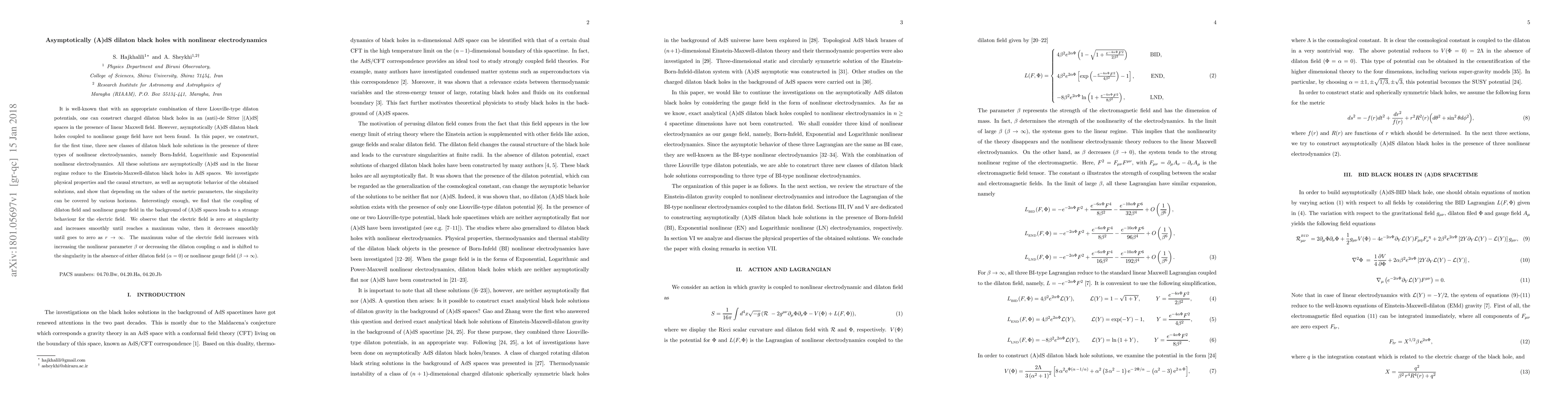 This paper constructs novel asymptotically (A)dS dilaton black hole solutions coupled with three types of nonlinear electrodynamics: Born-Infeld, Logarithmic, and Exponential. These solutions exhibit unique behavior, including an electric field that starts at zero, reaches a maximum, and then decreases to zero at infinity, influenced by the dilaton and nonlinear parameters.