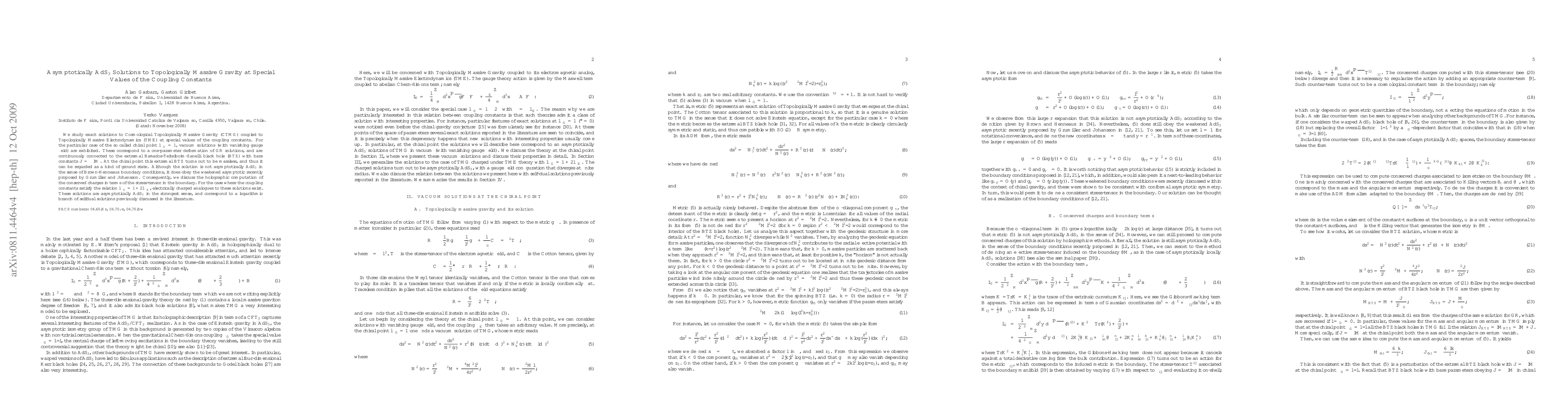 This paper explores exact solutions to Cosmological Topologically Massive Gravity coupled to Topologically Massive Electrodynamics at special coupling constants, revealing vacuum solutions at the chiral point that are deformations of GR solutions and connected to a massless extremal BTZ black hole. It also discusses holographic computation of conserved charges and finds asymptotically AdS_3 solutions for a specific relation between coupling constants.