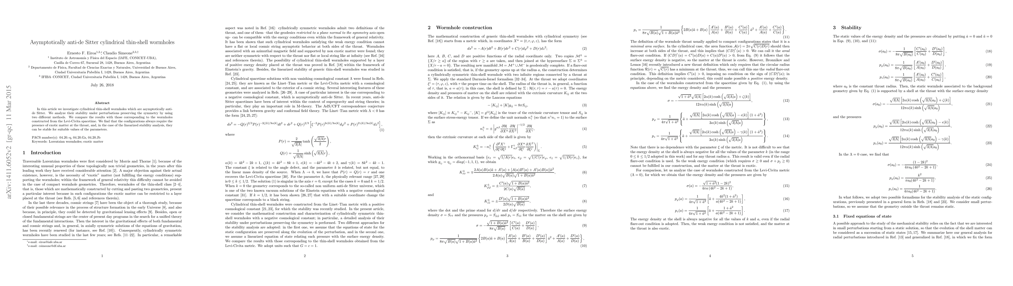 In this article we investigate cylindrical thin-shell wormholes which are asymptotically anti-de Sitter. We analyze their stability under perturbations preserving the symmetry by using two different methods. We compare the results with those corresponding to the wormholes constructed from the Levi-Civita spacetime. We find that the configurations always require the presence of exotic matter at the throat, and, in the case of the linearized stability analysis, they can be stable for suitable values of the parameters