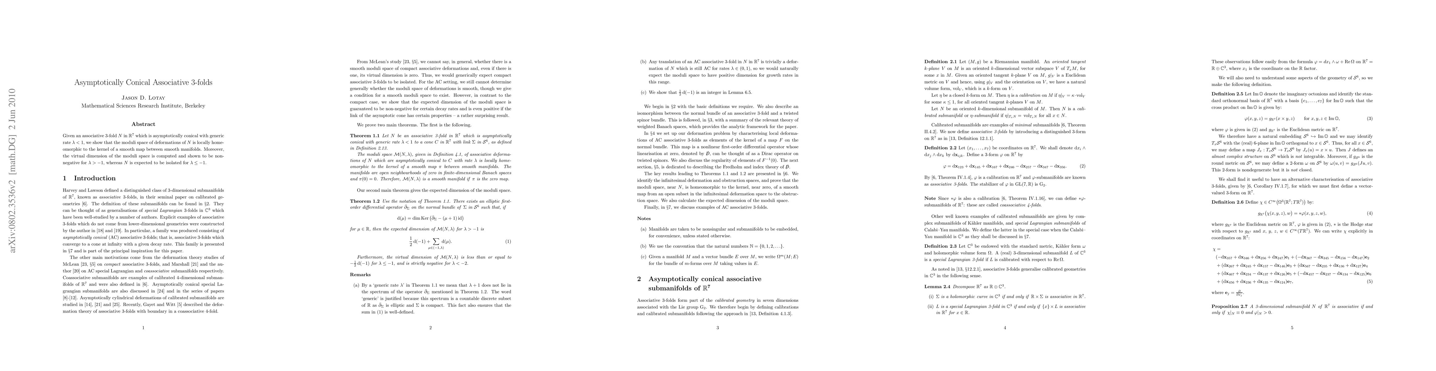 Researchers show that the moduli space of deformations for asymptotically conical associative 3-folds is locally homeomorphic to a kernel of a smooth map, with virtual dimension non-negative for rates above -1.