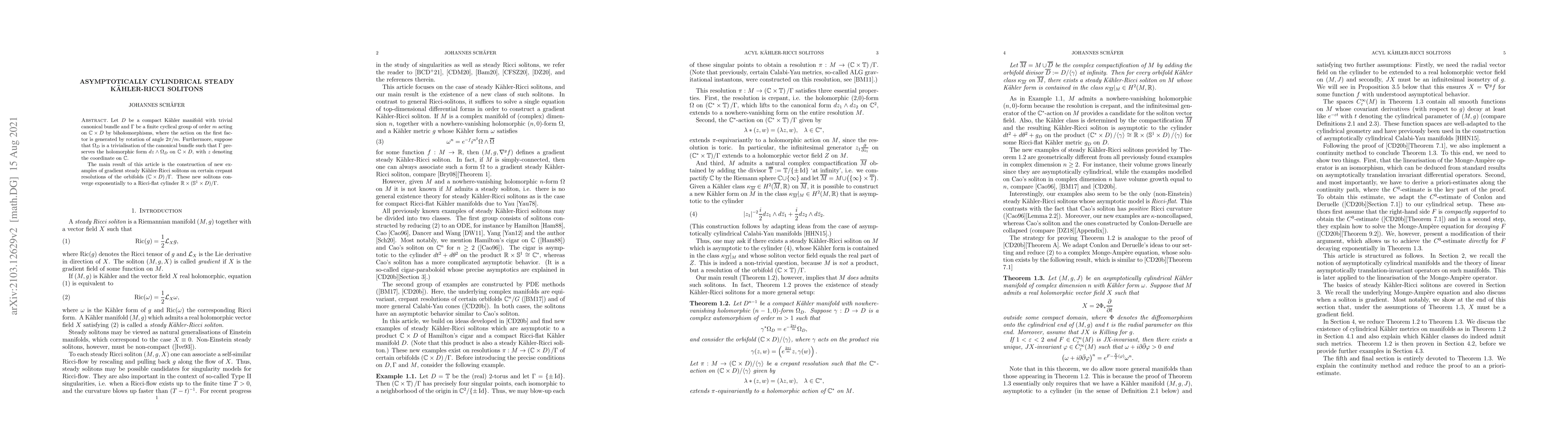 This paper constructs new gradient steady Kähler-Ricci solitons on crepant resolutions of certain orbifolds, showing they asymptotically converge to a Ricci-flat cylindrical structure. The construction leverages a cyclic group action on $\mathbb{C} \times D$ preserving a holomorphic form.