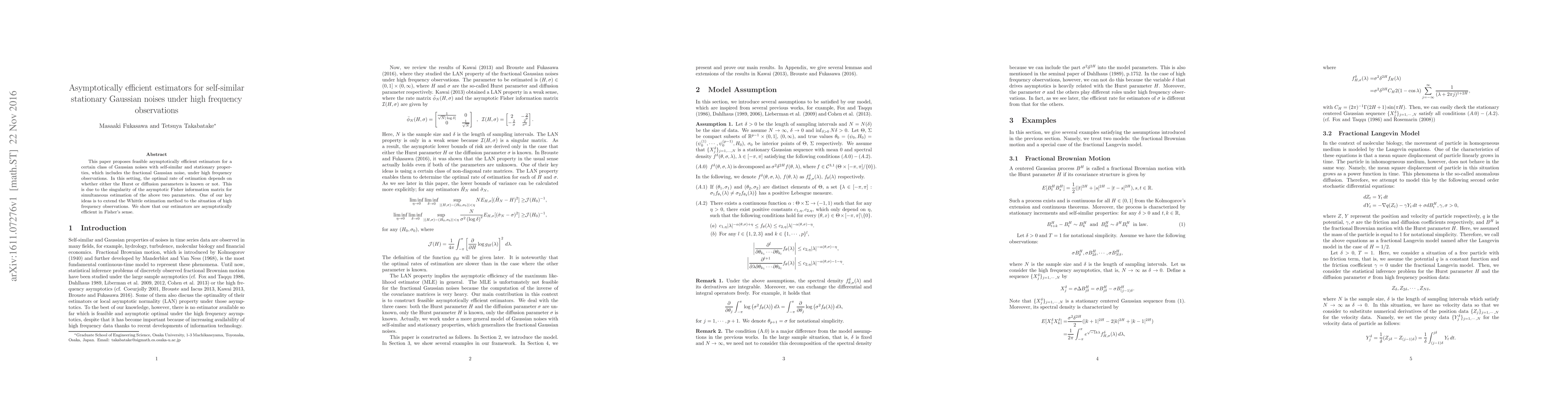 This paper proposes feasible asymptotically efficient estimators for a certain class of Gaussian noises with self-similar and stationary properties, which includes the fractional Gaussian noise, under high frequency observations. In this setting, the optimal rate of estimation depends on whether either the Hurst or diffusion parameters is known or not. This is due to the singularity of the asymptotic Fisher information matrix for simultaneous estimation of the above two parameters. One of our key ideas is to extend the Whittle estimation method to the situation of high frequency observations. We show that our estimators are asymptotically efficient in Fisher's sense.