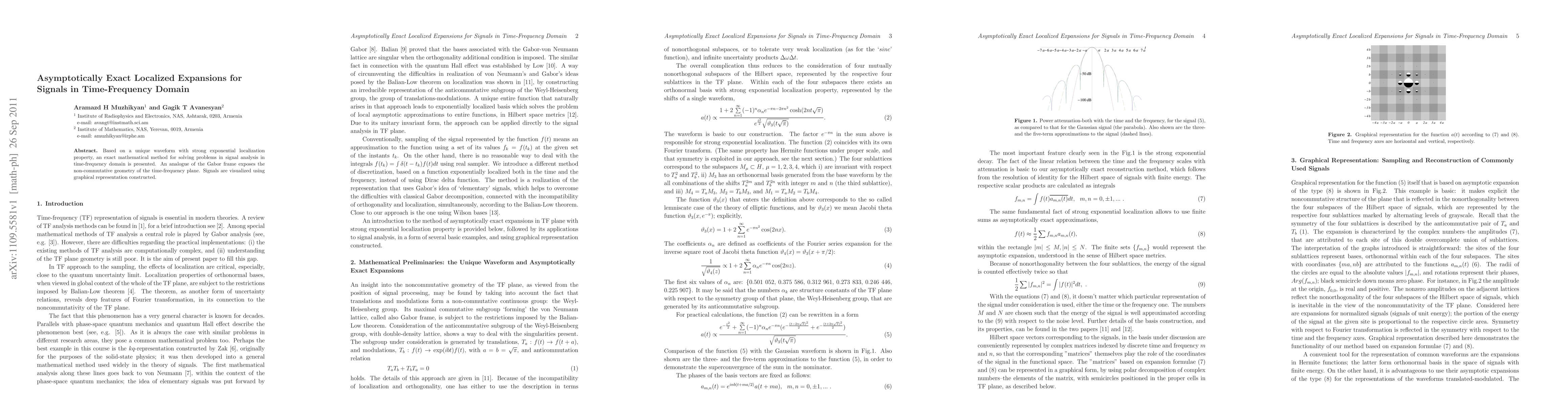Based on a unique waveform with strong exponential localization property, an exact mathematical method for solving problems in signal analysis in time-frequency domain is presented. An analogue of the Gabor frame exposes the non-commutative geometry of the time-frequency plane. Signals are visualized using graphical representation constructed.