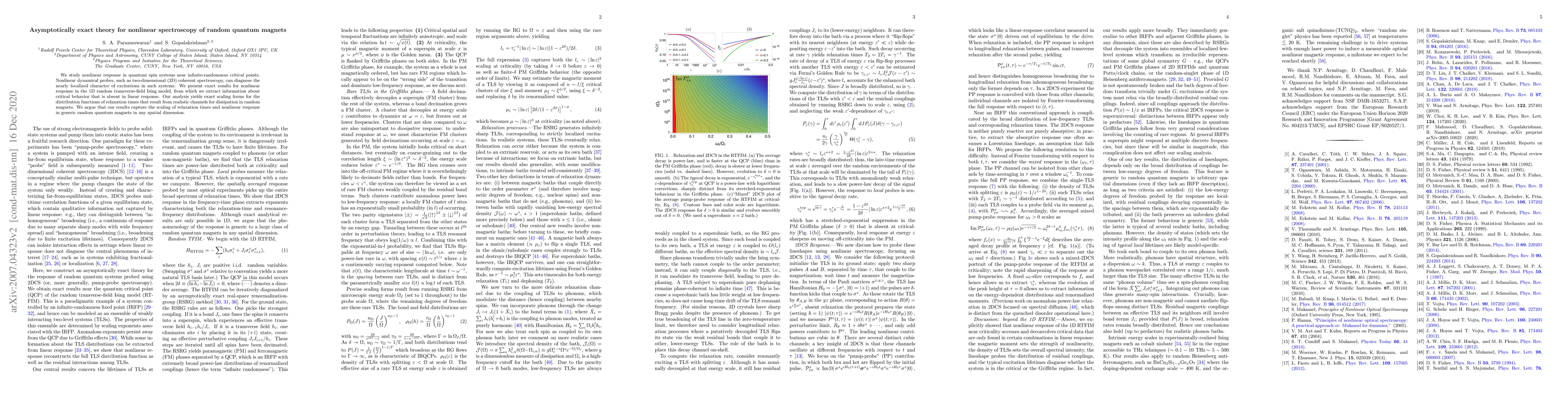 This research paper develops an asymptotically exact theory for nonlinear spectroscopy of random quantum magnets, providing new insights into the critical behavior of these systems through exact scaling forms for relaxation times and nonlinear response.